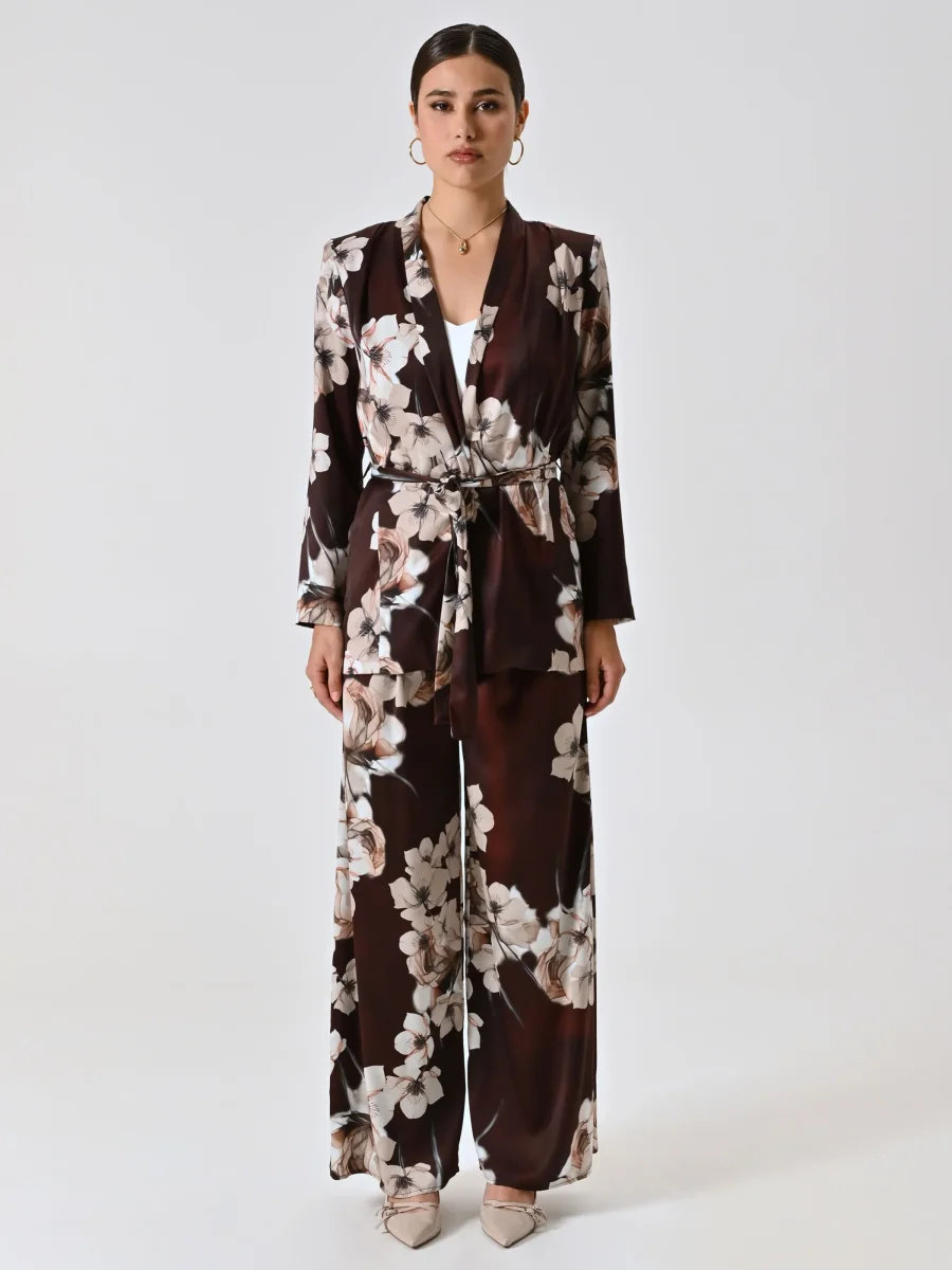 Realizzata in raso con stampa floreale, la Giacca Camicia stampa Floreale presenta una silhouette femminile e versatile, ideale per accompagnare look da cerimonia con un tocco romantico. Il tessuto lucente valorizza le sfumature floreali nei toni del rosa malva, mentre la chiusura frontale consente una vestibilità pratica e confortevole.