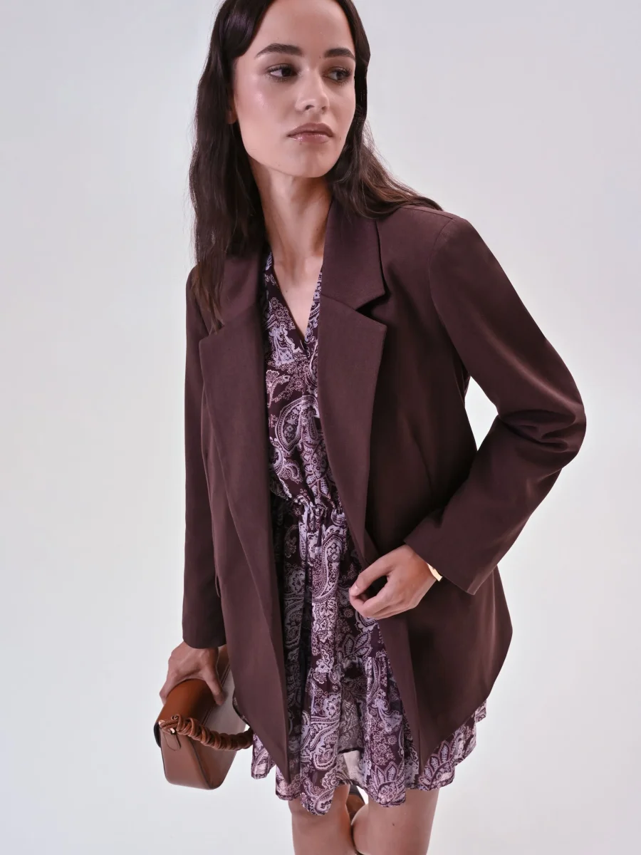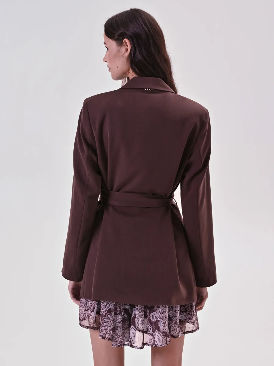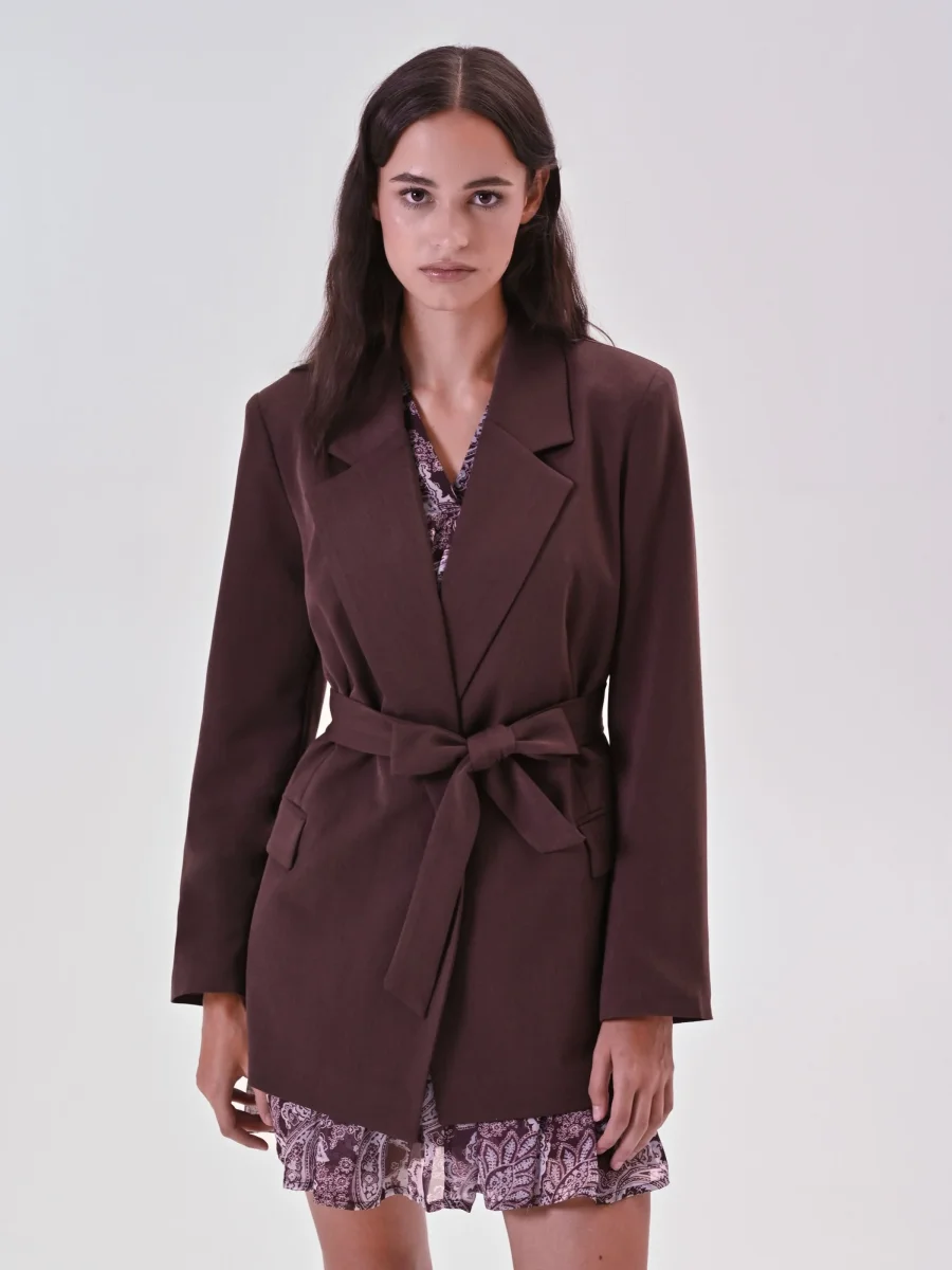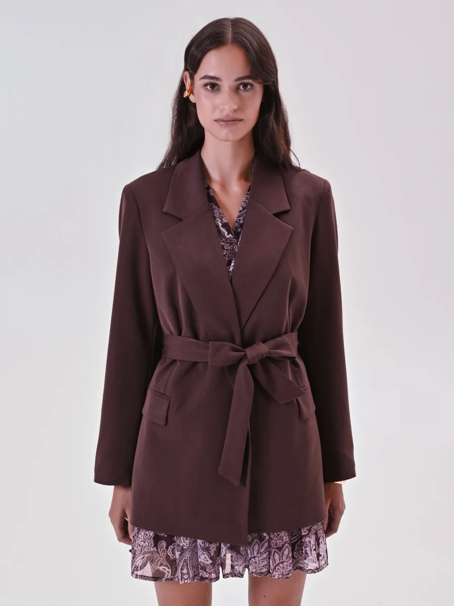 La Giacca con Cintura Marrone Cioccolato è un capo elegante e versatile, perfetto per completare con stile i look della stagione.