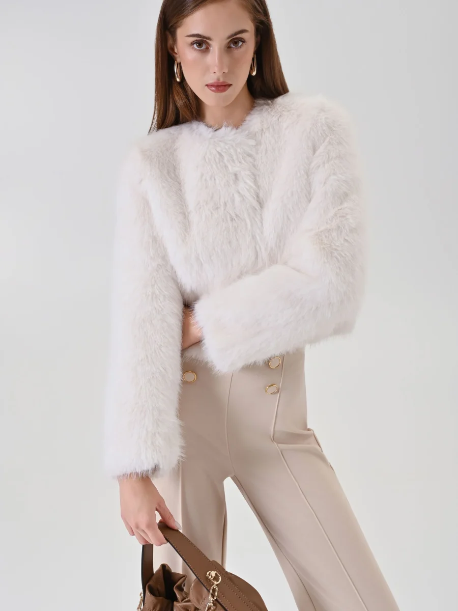 Un tocco di luminosa morbidezza per definire i look della stagione autunnale. La giacca corta bianca è il capospalla che unisce comfort e un’attitudine glam, pensata per una donna che non rinuncia a un dettaglio di stile, anche nella quotidianità.