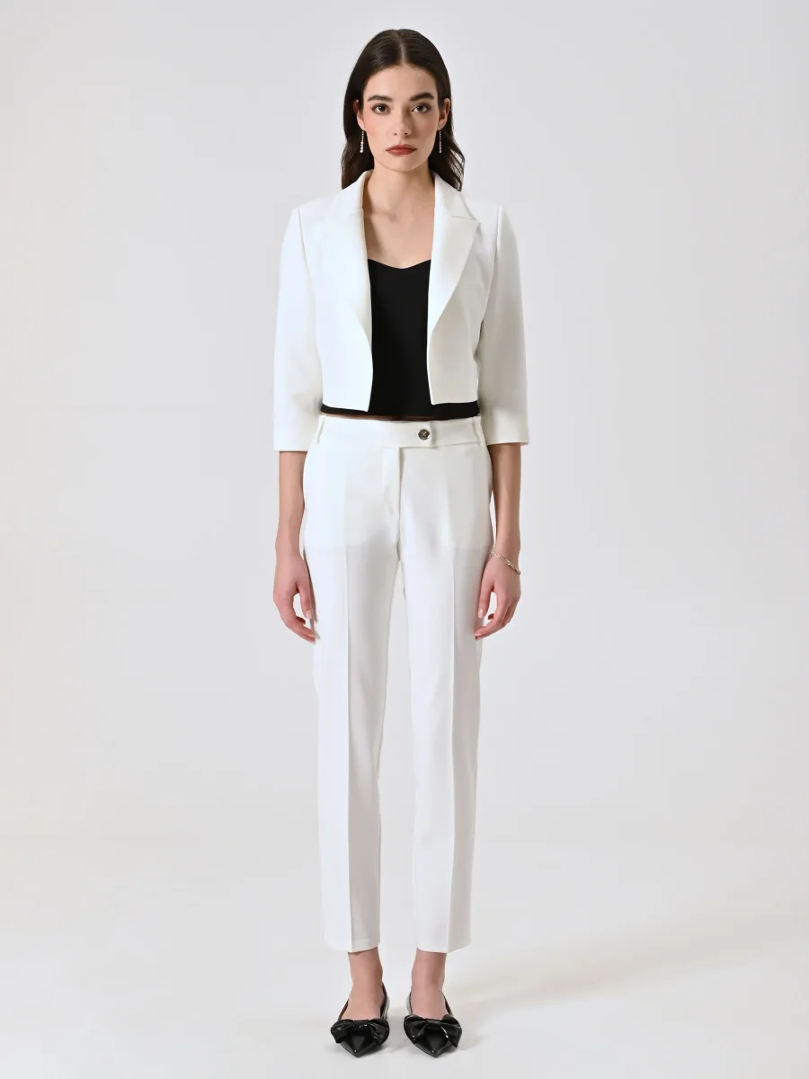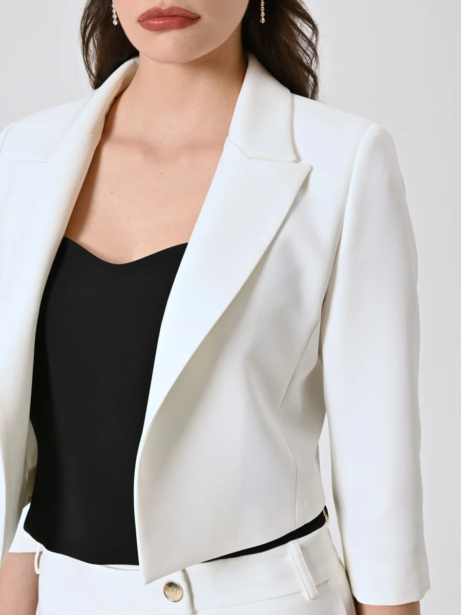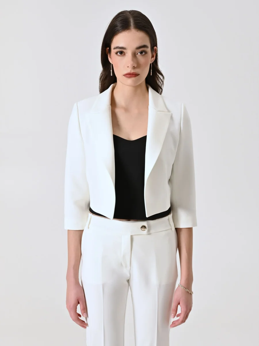 La Giacca Corta in Tessuto Tecnico è un capo elegante e versatile, pensato per valorizzare con stile sia i look formali che quelli più casual chic.