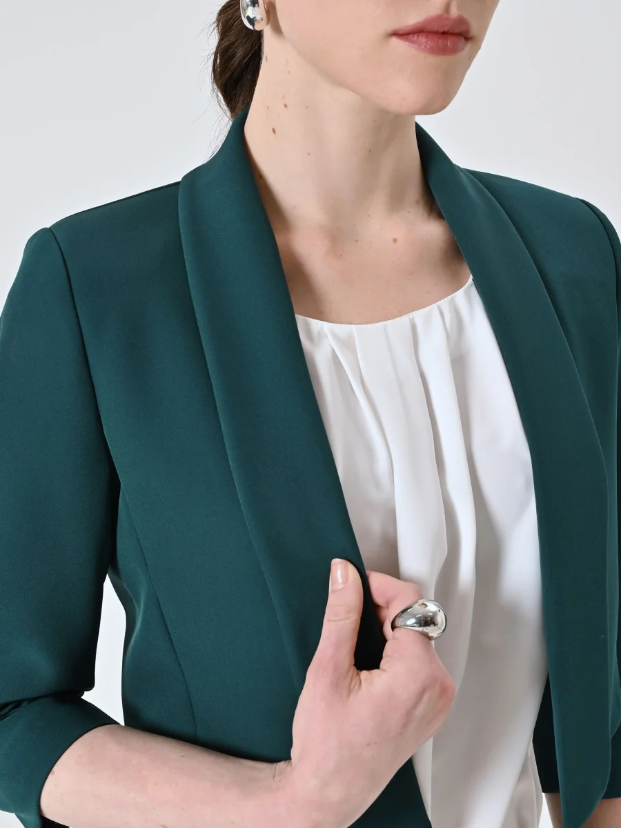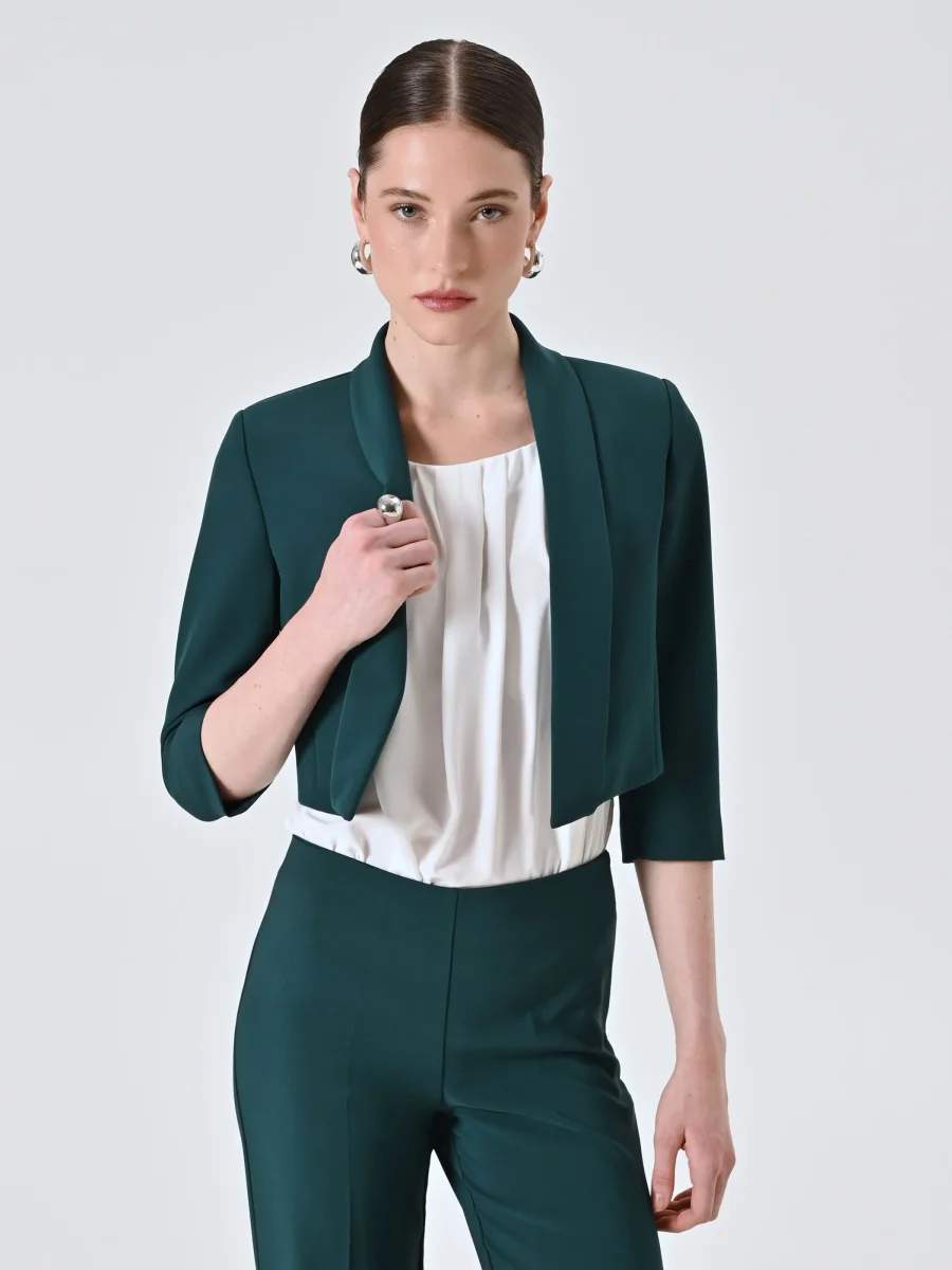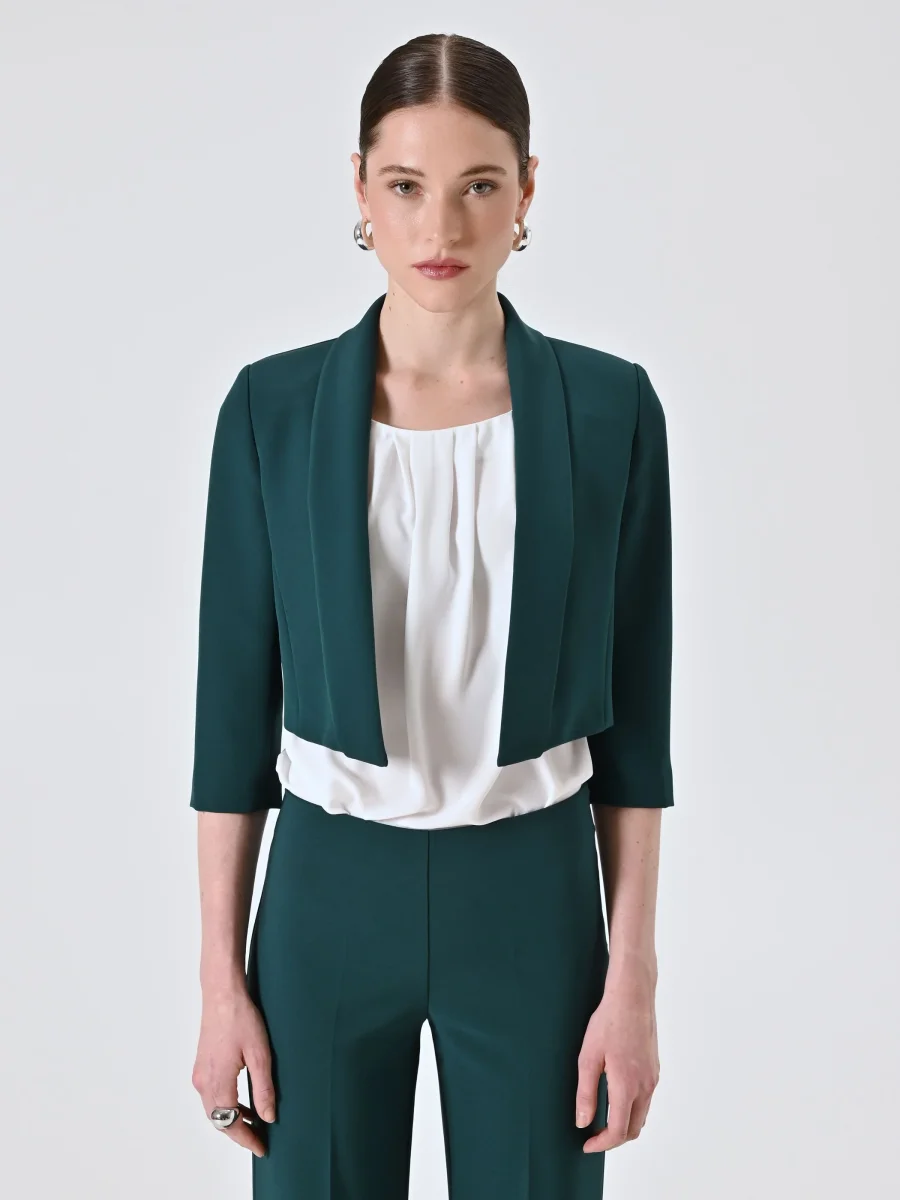 La Giacca Corta in Tessuto Tecnico è un capo elegante e versatile, pensato per valorizzare con stile sia i look formali che quelli più casual chic.