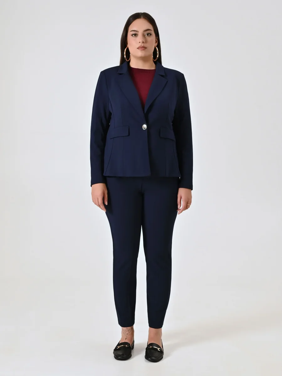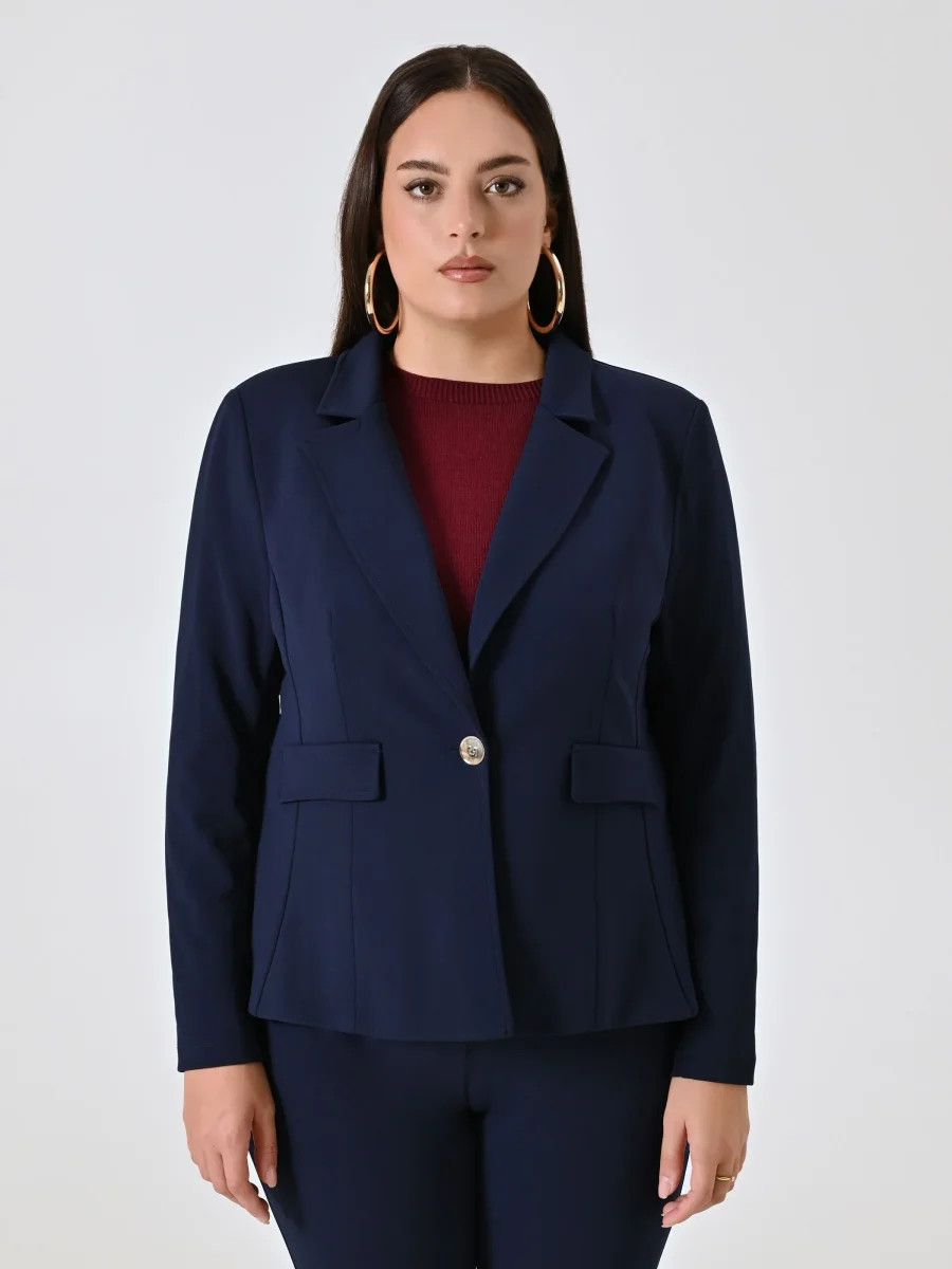 La Giacca Curvy Monobottone è un must-have contemporaneo pensato per valorizzare con eleganza ogni silhouette curvy. Realizzata in scuba mano crepe, tessuto tecnico parzialmente riciclato, la Giacca Curvy Monobottone è soderata e presenta spalline leggermente imbottite per un fit definito e strutturato. Le patte effetto tasca e il bottone piatto dorato a vista completano il design con un dettaglio distintivo. La Giacca Curvy Monobottone si abbina perfettamente ai pantaloni coordinati CFC0121244003 o CFC0121248003 per creare un completo formale e femminile. Completa il look con calzature e accessori di collezione e scegli la collezione Lingerie Rinascimento per un fit impeccabile. Ideale per l’ufficio o la laurea, la Giacca Curvy Monobottone è una scelta di stile versatile e raffinata. • Il capo è Made in Italy • La modella è alta 1,79 m e indossa la taglia 48 IT.