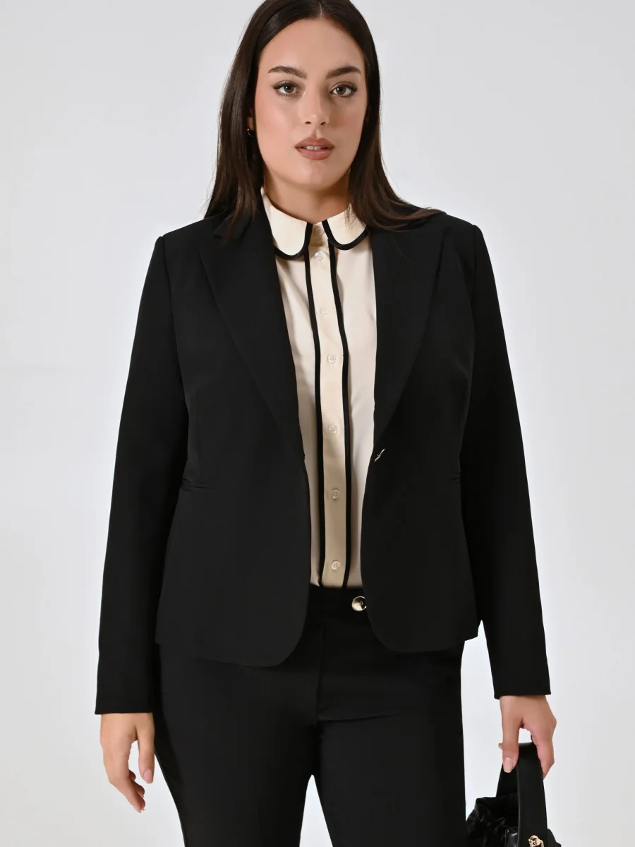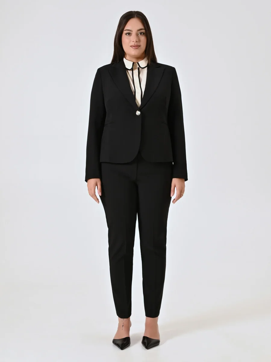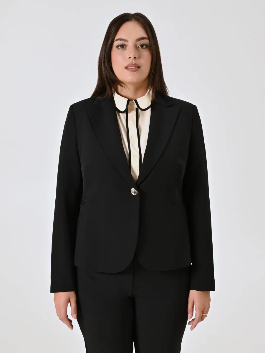 La Giacca Curvy Monobottone è un capo iconico dal design essenziale, ideale per completare outfit eleganti e contemporanei. Realizzata in tessuto tecnico parzialmente riciclato, la Giacca Curvy Monobottone è foderata e rifinita con revers a lancia, spalline imbottite e tasche a filetto che ne definiscono la struttura. La chiusura con bottone singolo dorato aggiunge un tocco luminoso e sofisticato. La Giacca Curvy Monobottone si abbina perfettamente a pantaloni in tessuto coordinato come i CFC0121264003, per un completo armonioso e femminile. Completano il look calzature e accessori di collezione, mentre per un fit impeccabile si consiglia la collezione Lingerie Rinascimento. Ideale per l’ufficio o per una cerimonia come la laurea, la Giacca Curvy Monobottone è una scelta versatile per affrontare ogni occasione con stile. • Il capo è Made in Italy • La modella è alta 1,79 m e indossa la taglia 48 IT.