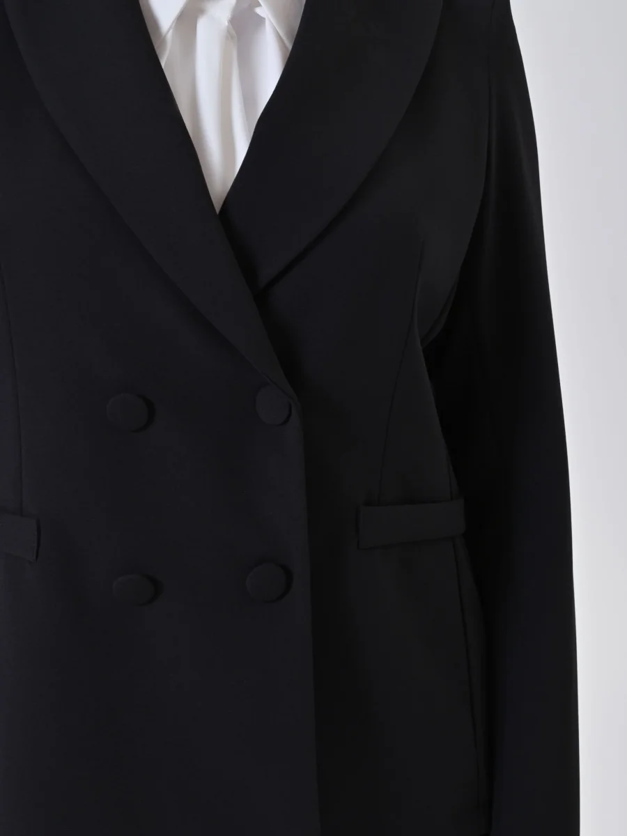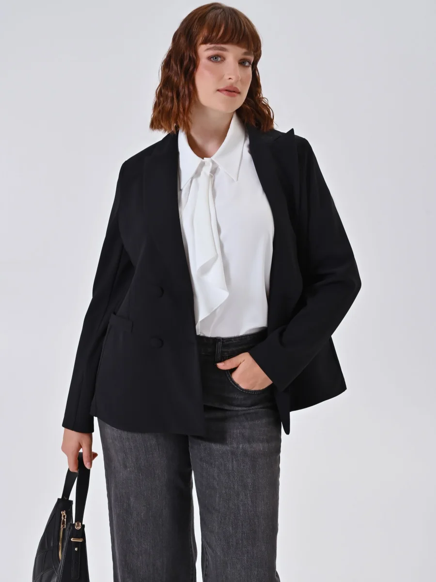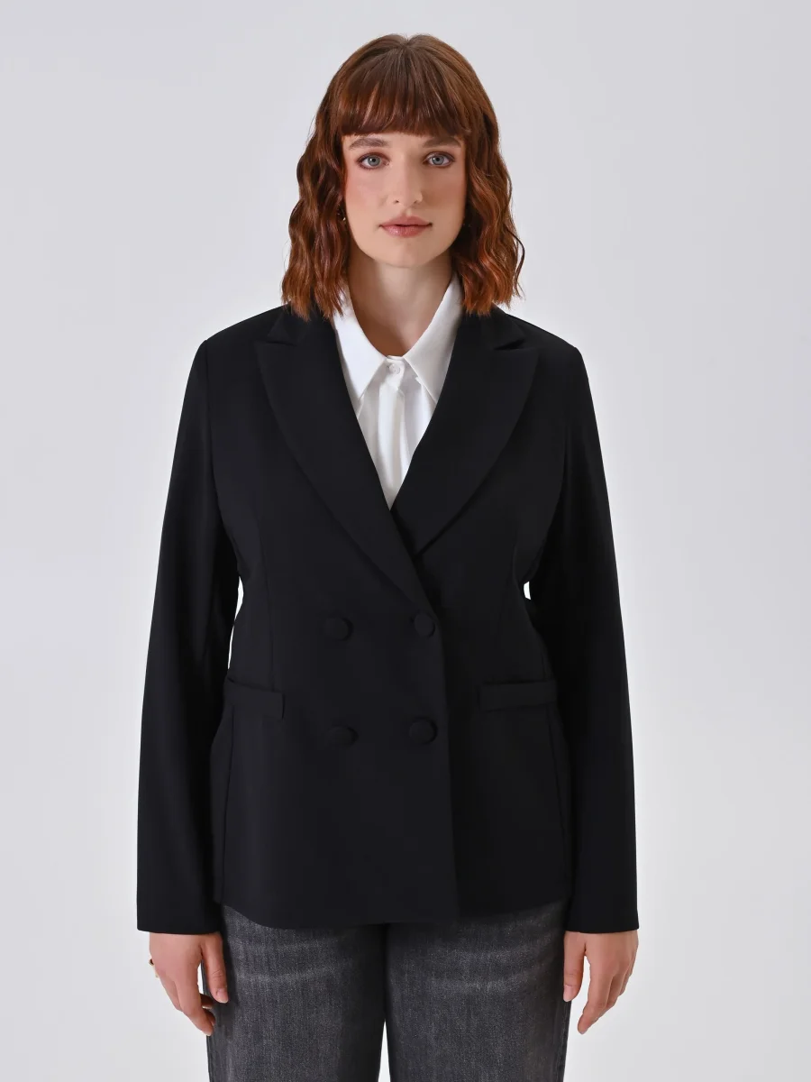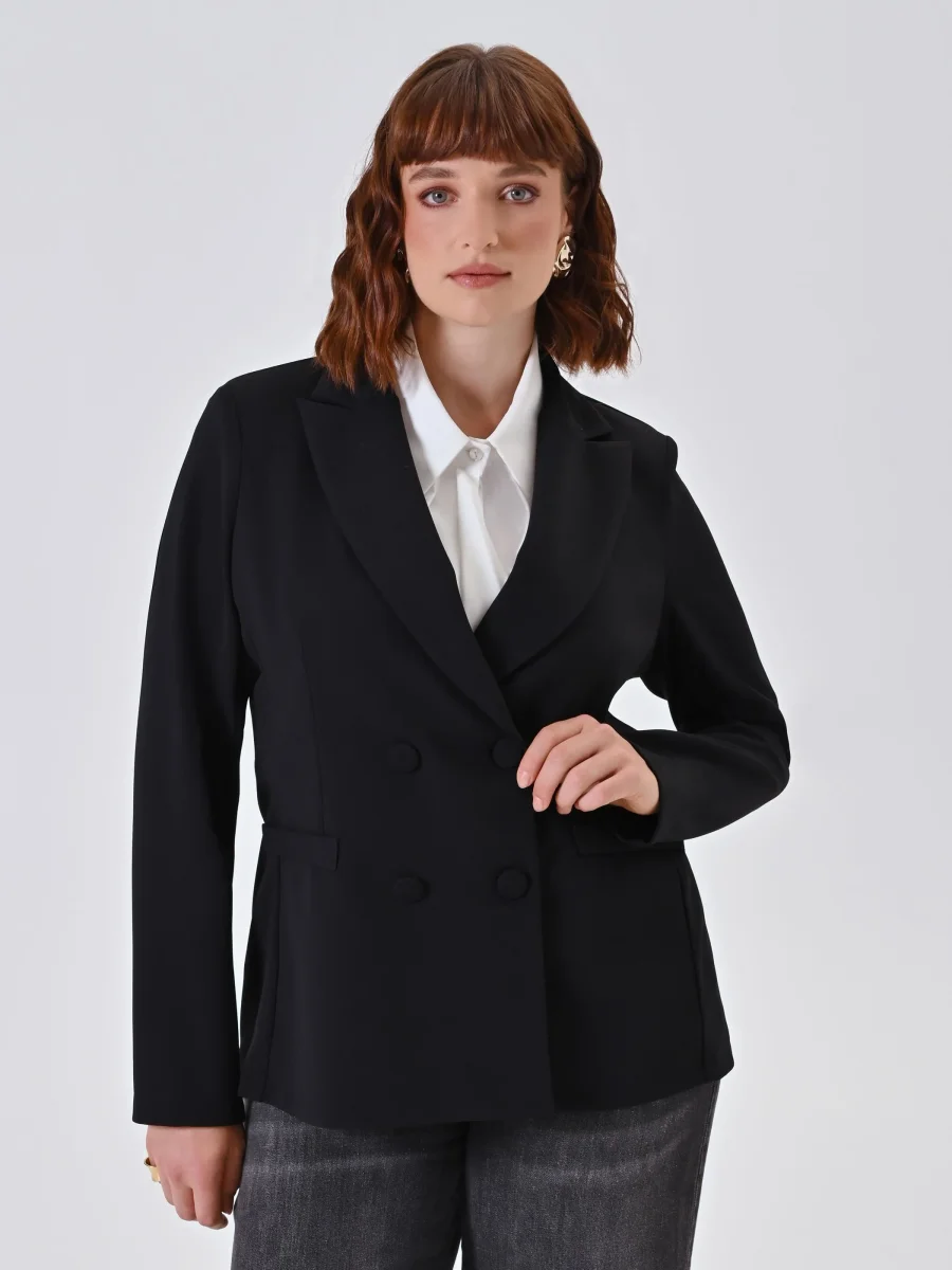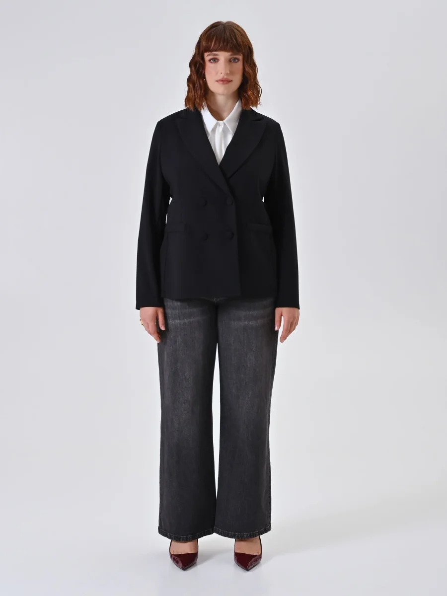 La Giacca Curvy Doppiopetto è un capo dall’allure elegante e contemporanea, pensato per completare i tuoi look con un tocco di carattere.
