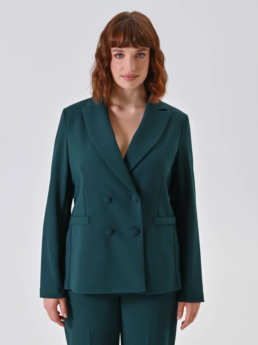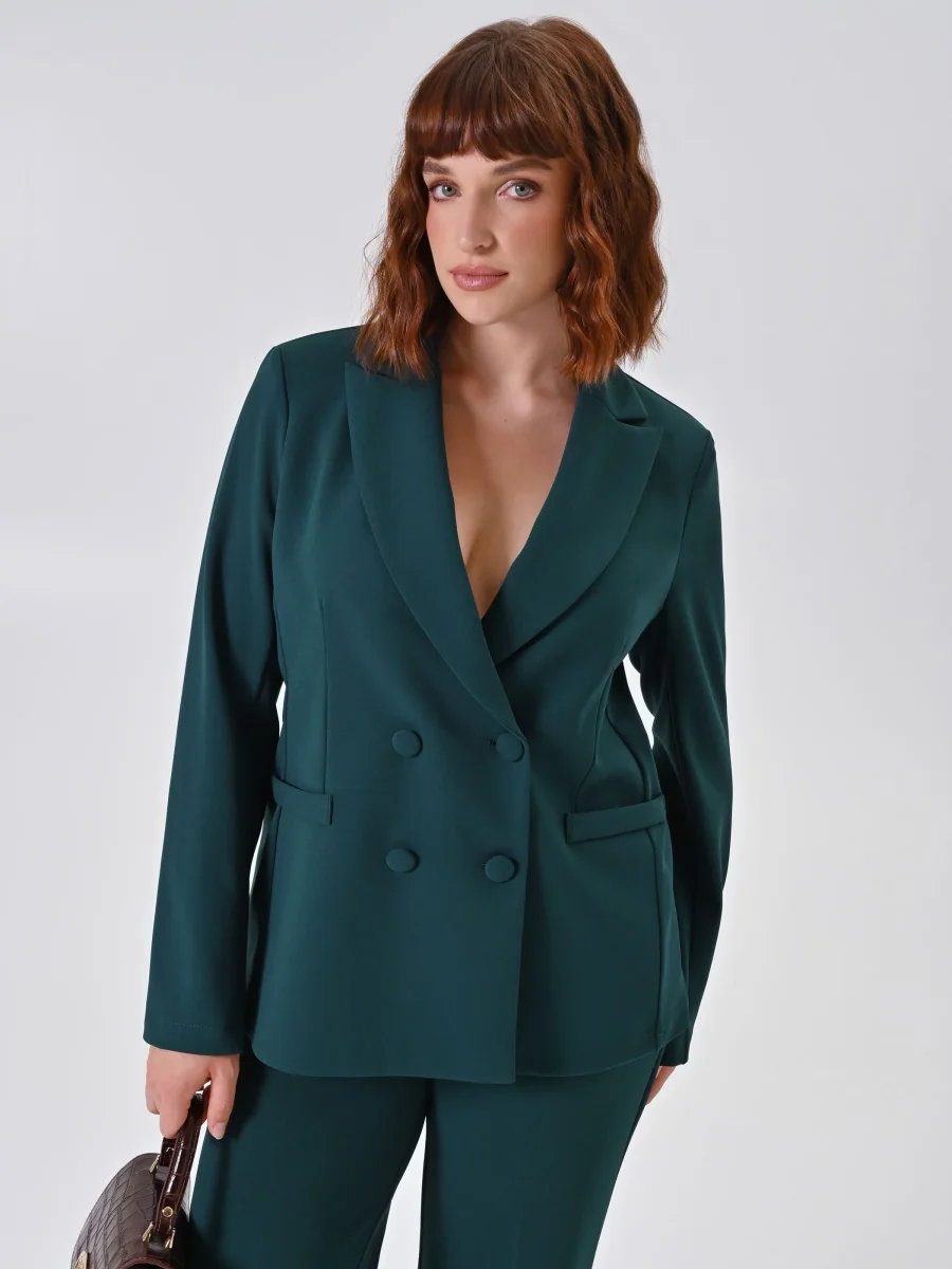 La Giacca Curvy Doppiopetto è un capo dall’allure elegante e contemporanea, pensato per completare i tuoi look con un tocco di carattere.