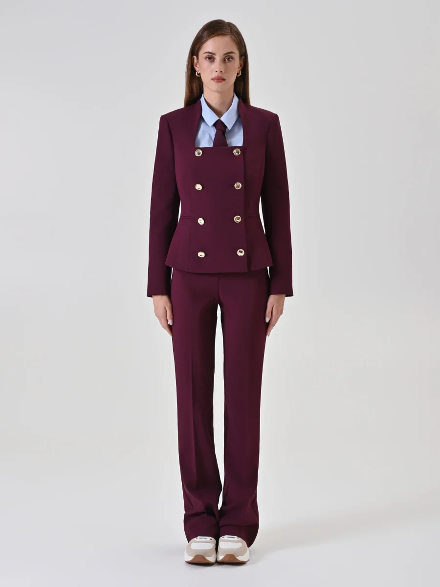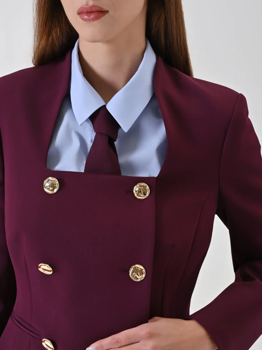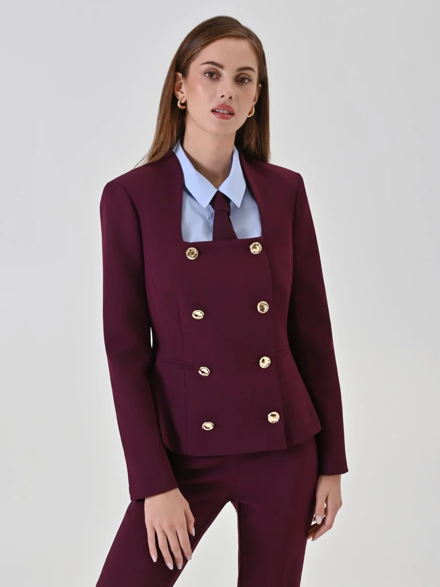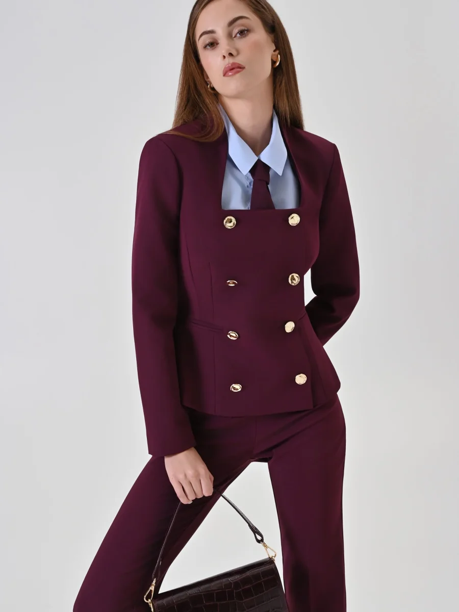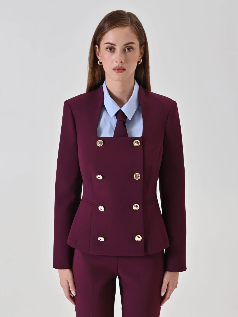 Giacca doppiopetto bordeaux con scollo quadrato