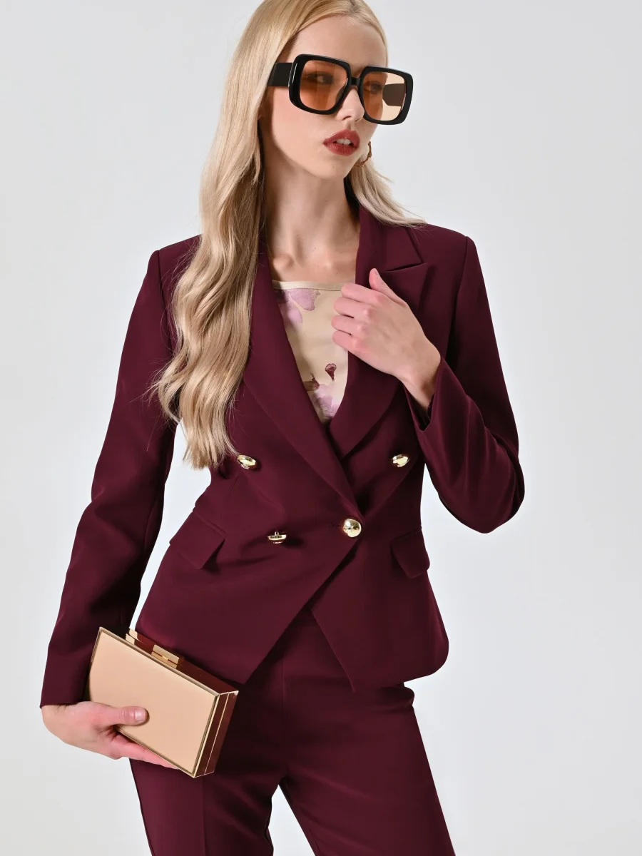 Giacca Doppiopetto Bordeaux in Tessuto Tecnico