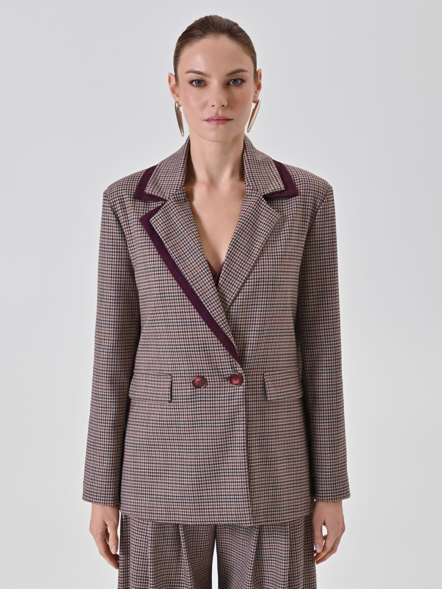Giacca doppiopetto check Bordeaux