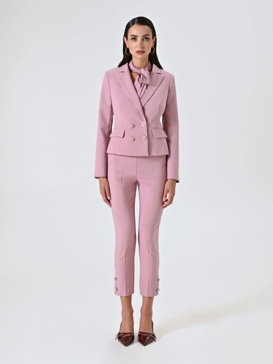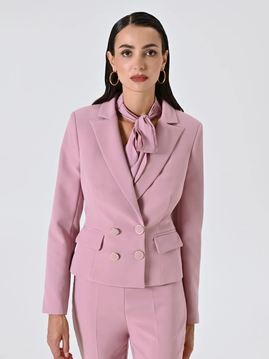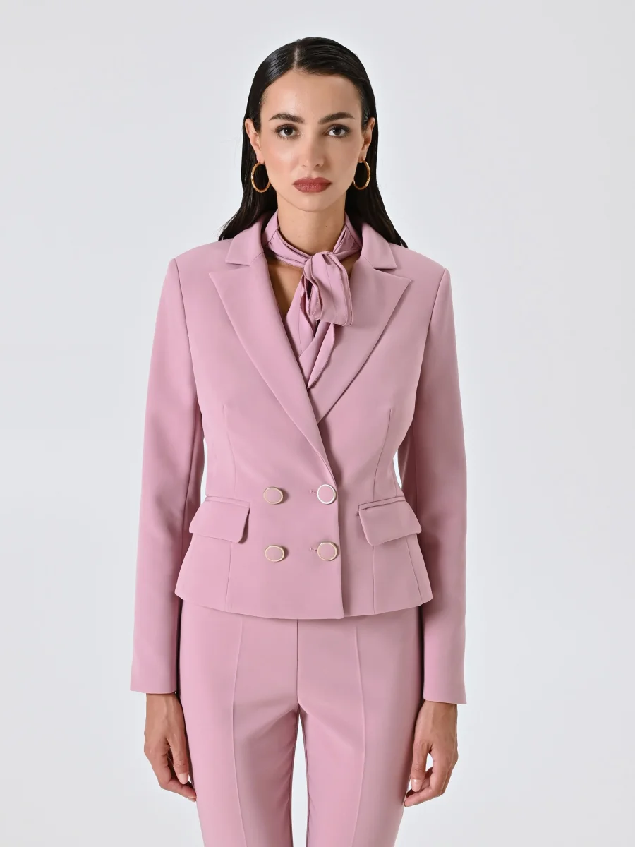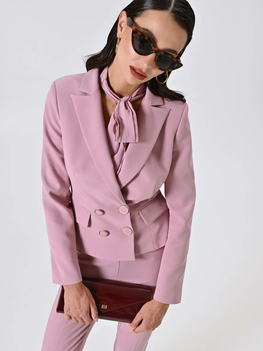 Giacca Doppiopetto in Tessuto Tecnico Rosa Malva