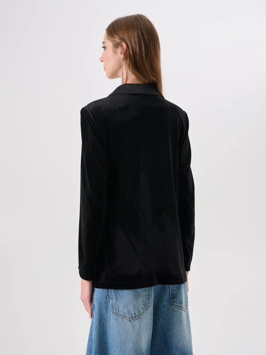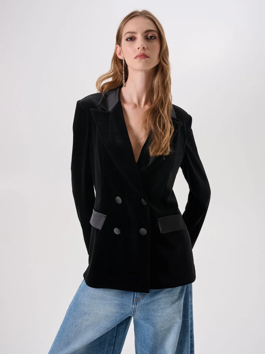 La Giacca Doppiopetto in velluto è una proposta dal design deciso e femminile, ideale per completare con stile i look party e per le occasioni speciali.