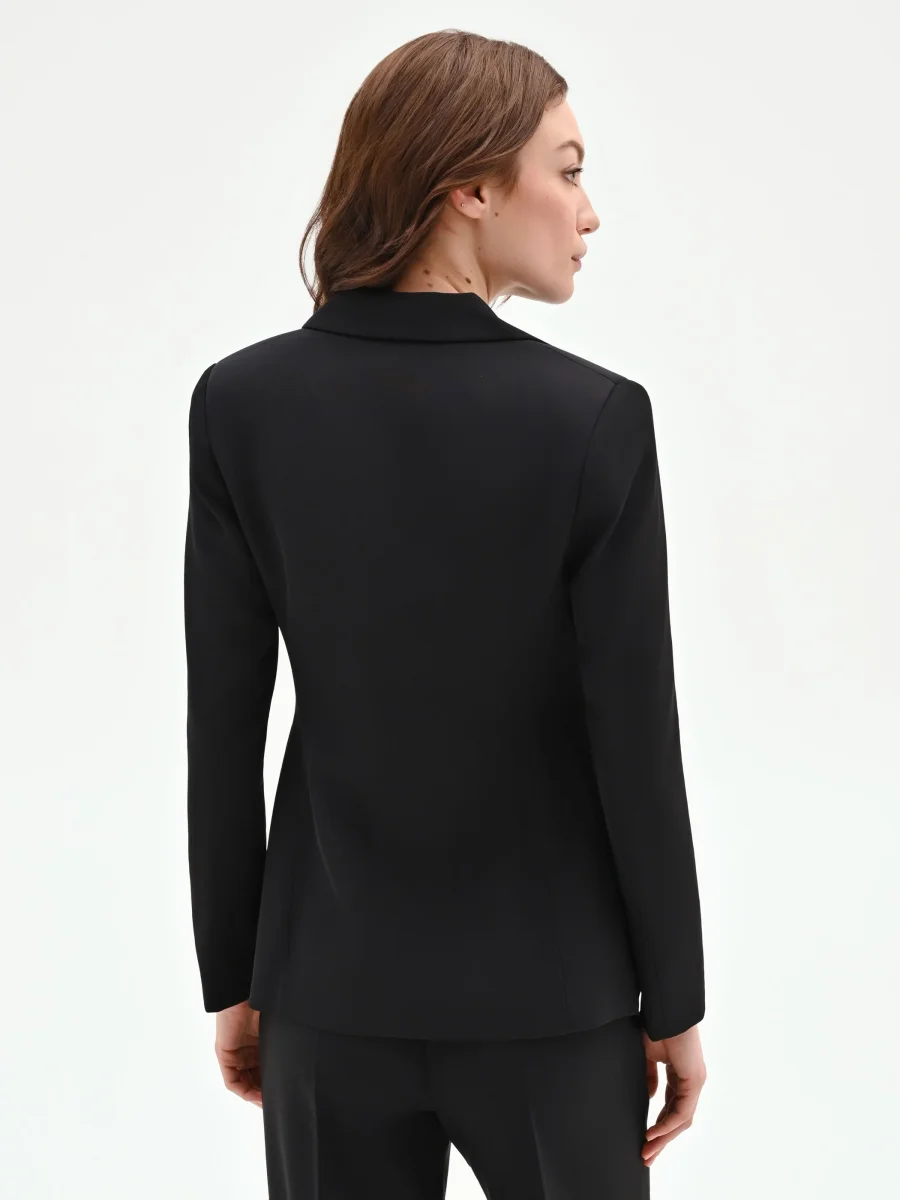 Un capo funzionale che non può mancare nel guardaroba, perfetto per creare un completo impeccabile con i suoi pantaloni coordinati. La sua versatilità permette di abbinarla anche a un abito tubino o a un denim per un look curato e contemporaneo.