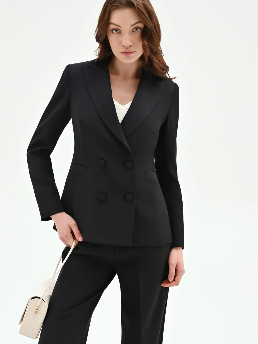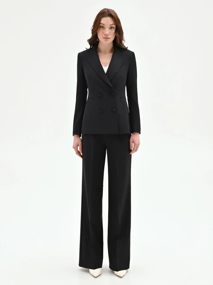 Un’interpretazione contemporanea del blazer che unisce rigore formale e femminilità. La giacca doppiopetto nera è un capo essenziale, pensato per accompagnare la donna Rinascimento in molteplici occasioni, dal lavoro agli eventi che richiedono un tocco di eleganza.