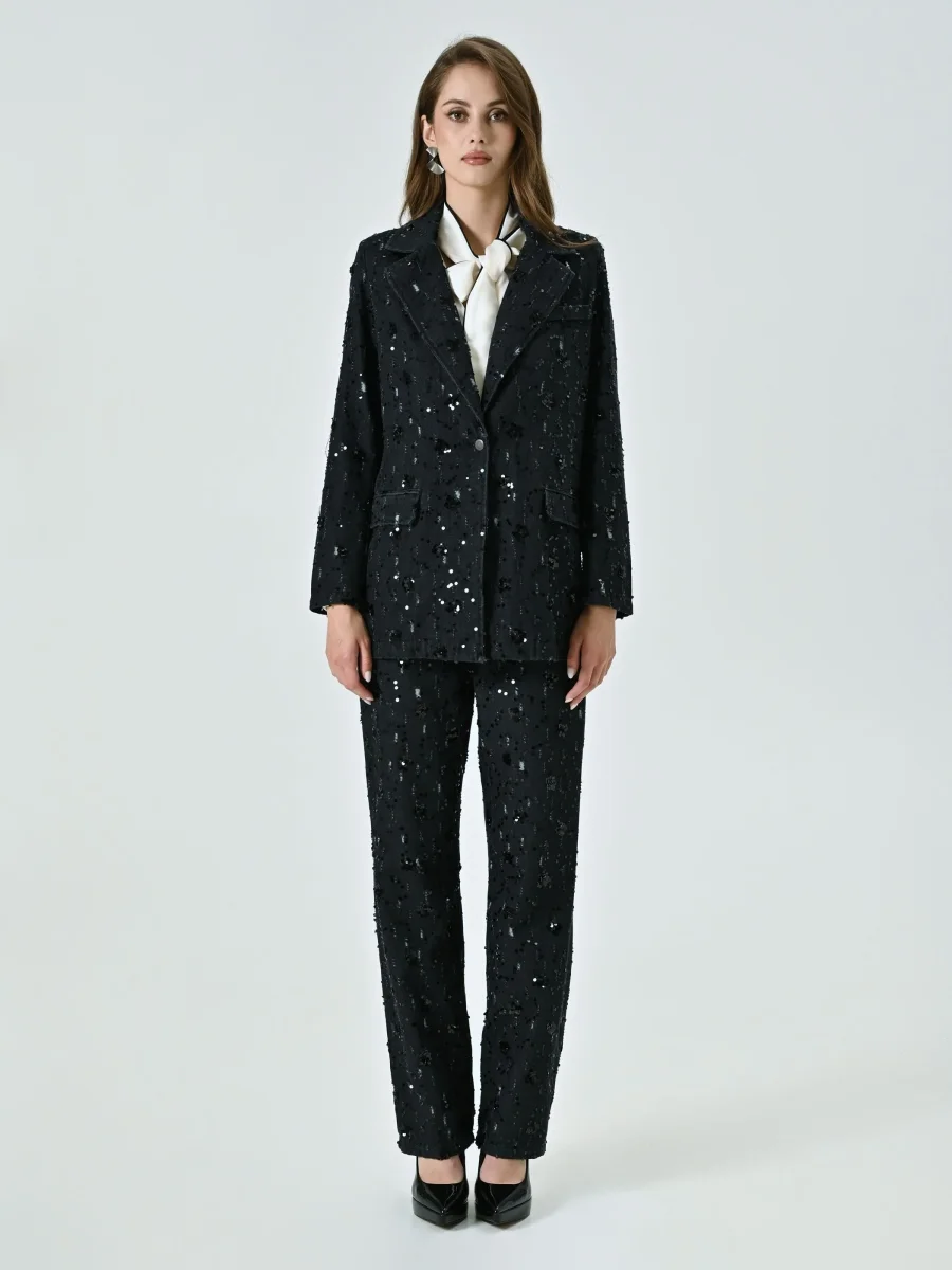 La Giacca in Denim con Decoro Paillettes è un capo distintivo dal fascino contemporaneo, perfetto per completare con personalità i tuoi look più speciali.