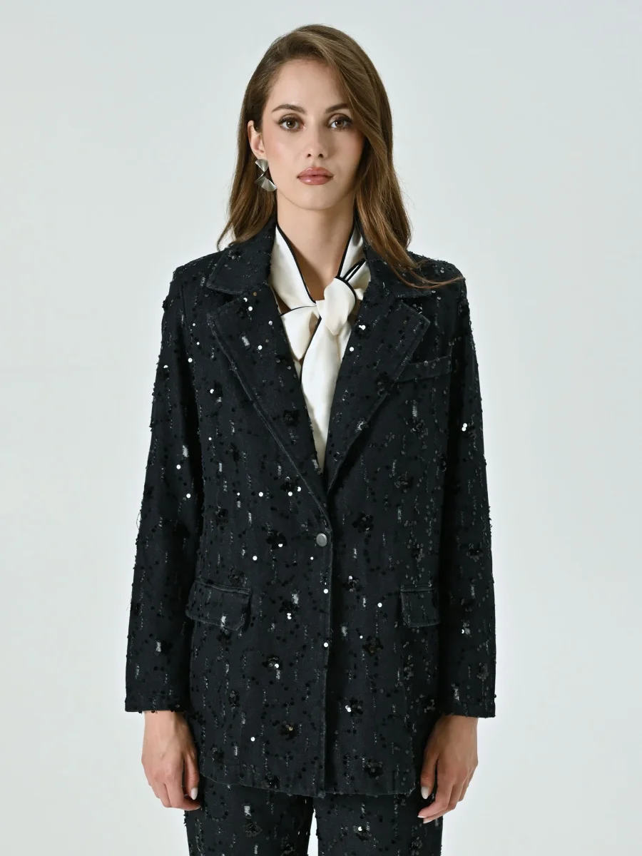 Giacca in Denim con Decoro Paillettes