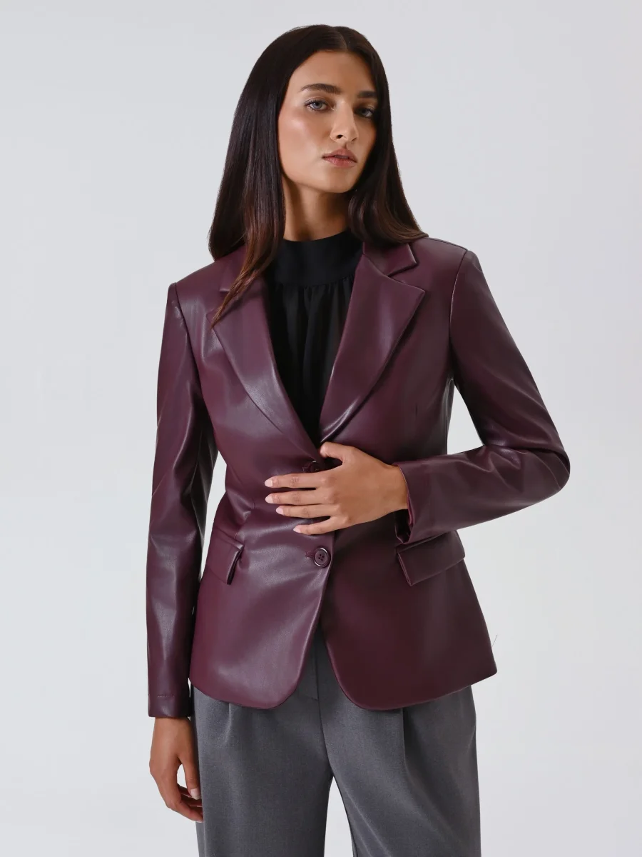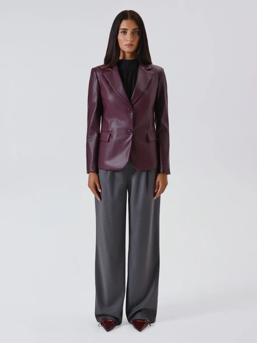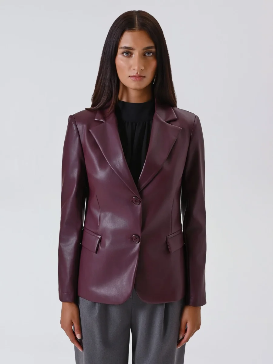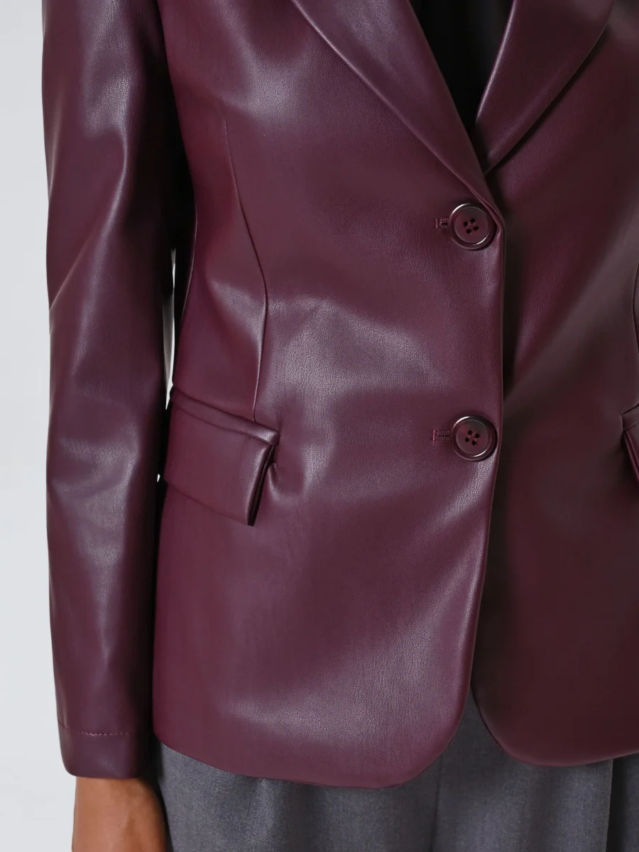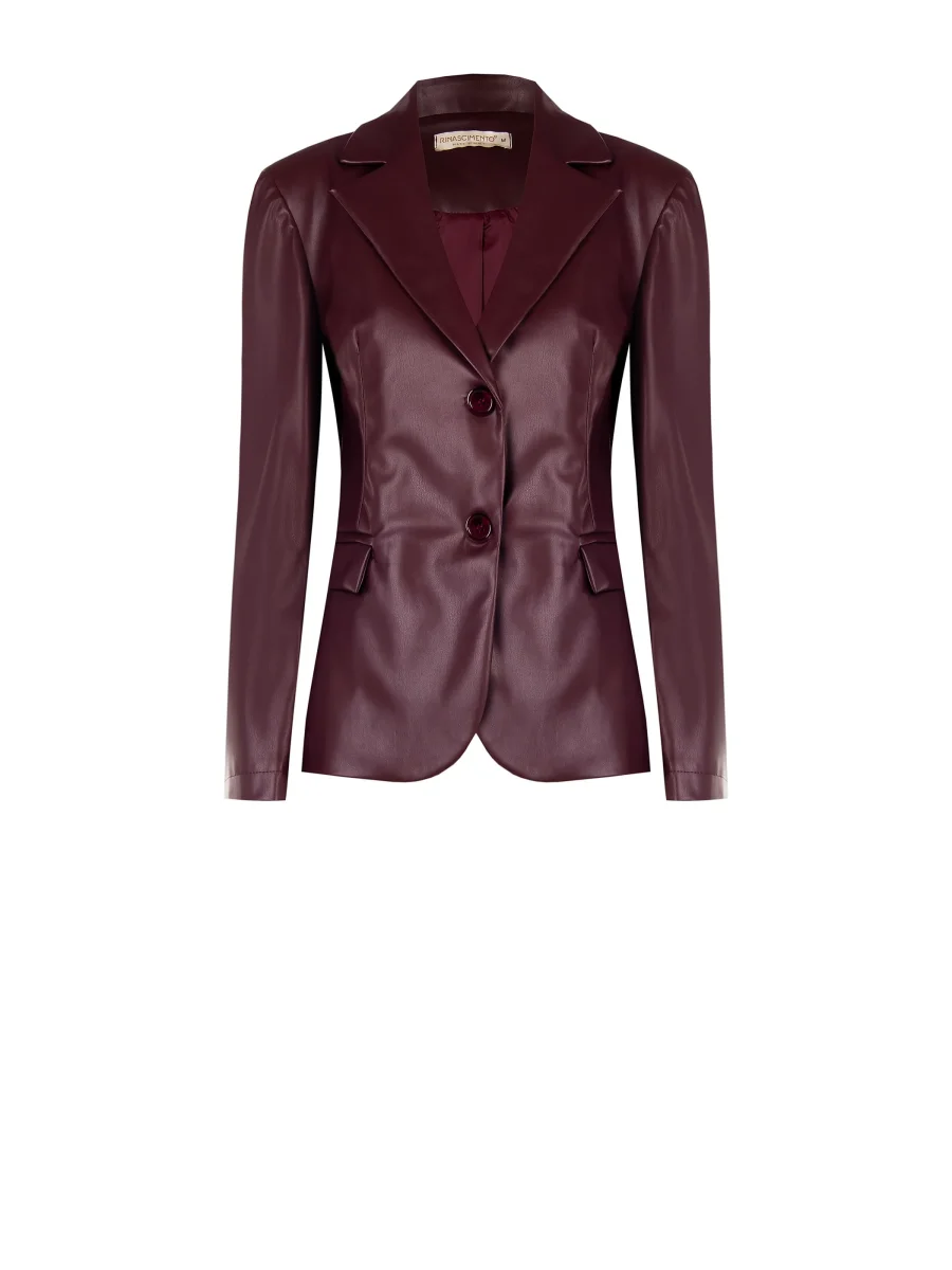 La giacca in simil pelle bordeaux è un capo di carattere che unisce eleganza e modernità.