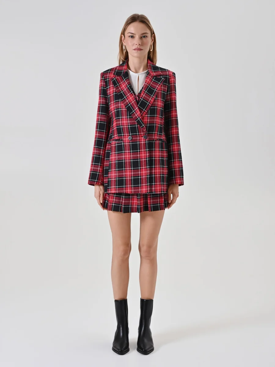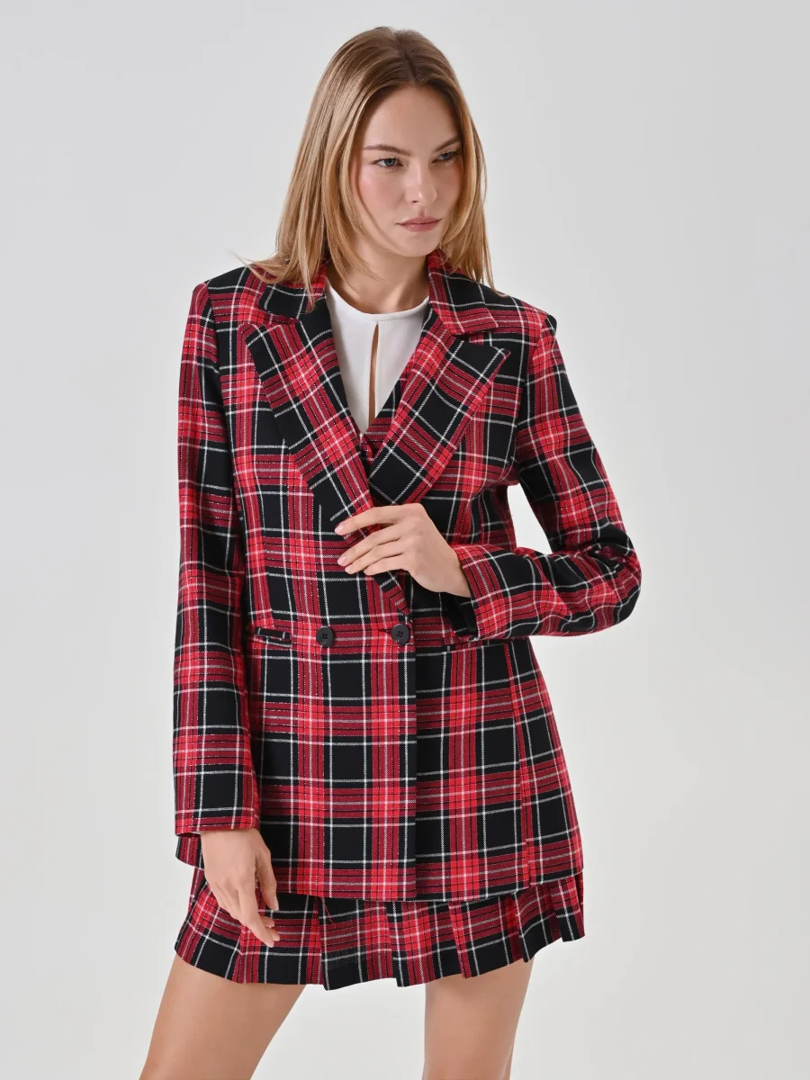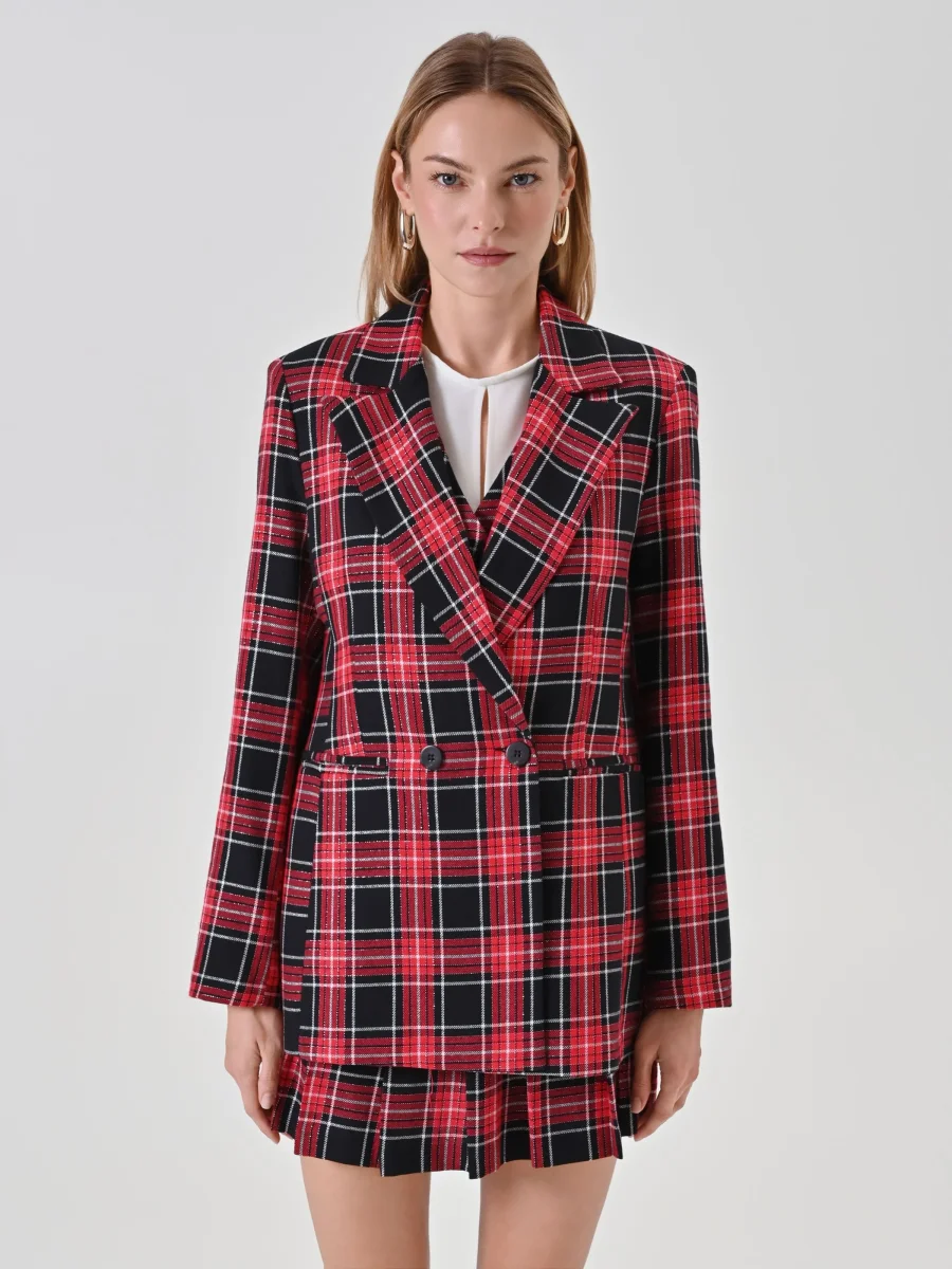 La Giacca in Tartan Lurex è un capo elegante e luminoso, perfetto per dare carattere ai tuoi look delle feste.