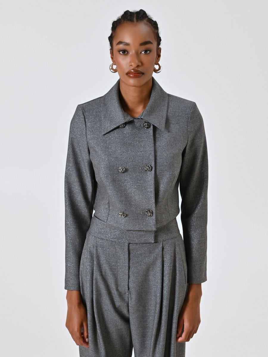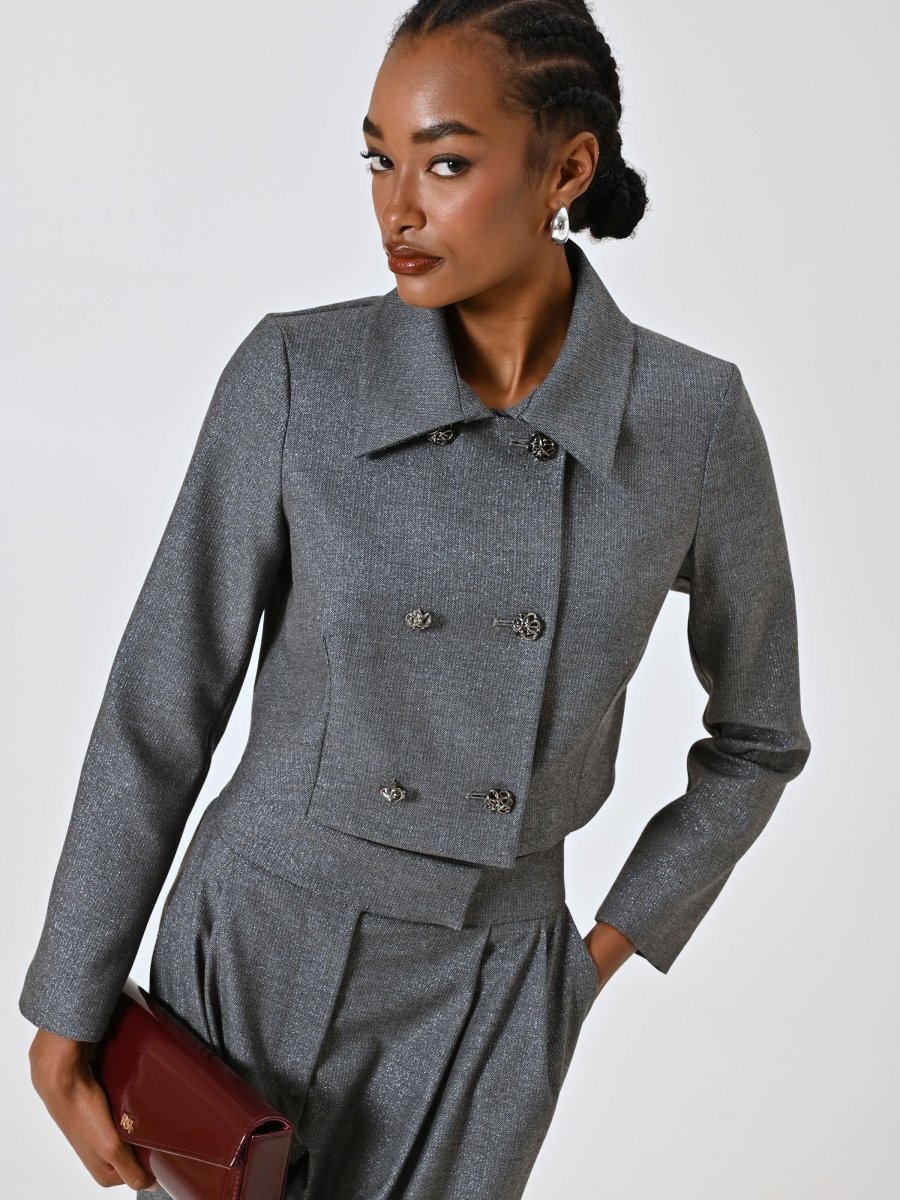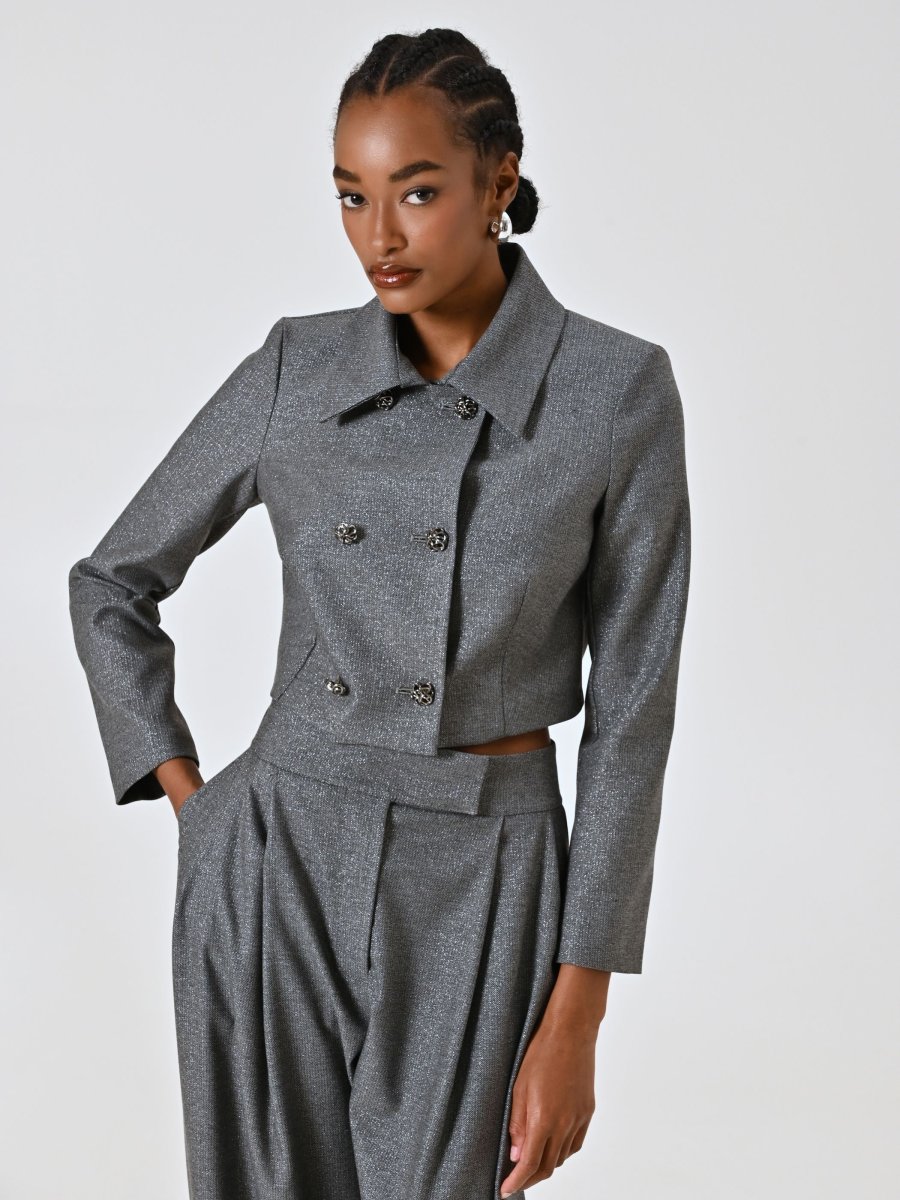 La Giacca in Tessuto Spinato con Filo Lurex è un capo elegante e ricercato, perfetto per aggiungere un tocco di luce al tuo look nelle occasioni speciali. Realizzata in poliviscosa con disegno spinato e filo lurex, la Giacca in Tessuto Spinato con Filo Lurex si distingue per il taglio scatoletta corto, l’ampio colletto e i bottoni design, con una comoda abbottonatura frontale che ne completa la linea. La Giacca in Tessuto Spinato con Filo Lurex si abbina perfettamente al Top in Tessuto Spinato con Filo Lurex CFC0125111003B241 e ai Pantaloni in Tessuto Spinato con Filo Lurex CFC0125107003B241 per un completo coordinato di grande impatto. Completala con calzature e accessori di collezione e indossala per eventi in cui desideri esprimere un’eleganza femminile e sofisticata. Il capo è Made in Italy. La modella è alta 1,77 m e indossa la taglia S.