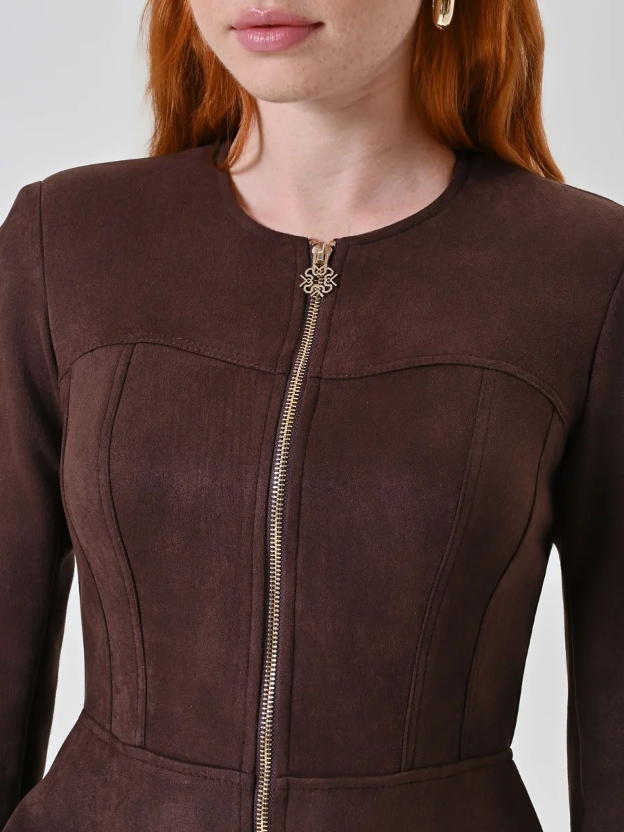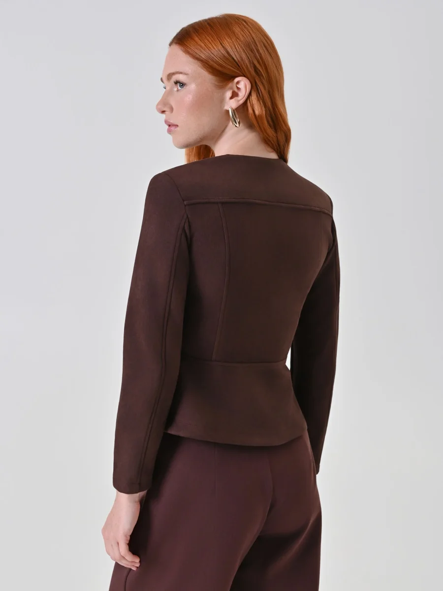 La Giacca Marrone effetto Dainetto è un capo dal fascino senza tempo, perfetto per completare look casual con un tocco ricercato. Realizzata in tessuto effetto suede, la Giacca Marrone effetto Dainetto presenta una costruzione femminile con baschina, spalline leggermente imbottite e impunture a vista che ne valorizzano il design. La chiusura con zip a vista aggiunge un dettaglio moderno e pratico. La Giacca Marrone effetto Dainetto si abbina con facilità a pantaloni slim o gonne midi, completando l’outfit con calzature ed accessori di collezione. Per un fit impeccabile scegli la collezione Lingerie Rinascimento. Indossala ogni giorno per uno stile contemporaneo e raffinato.