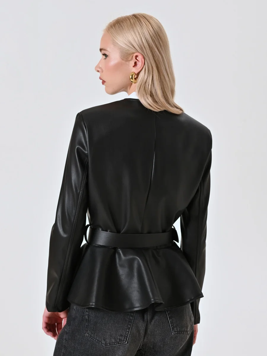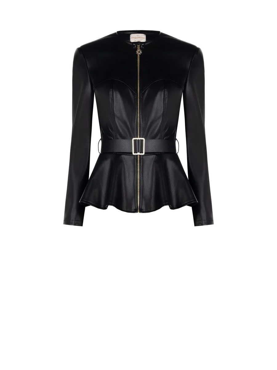Giacca Nera in Similpelle con Baschina