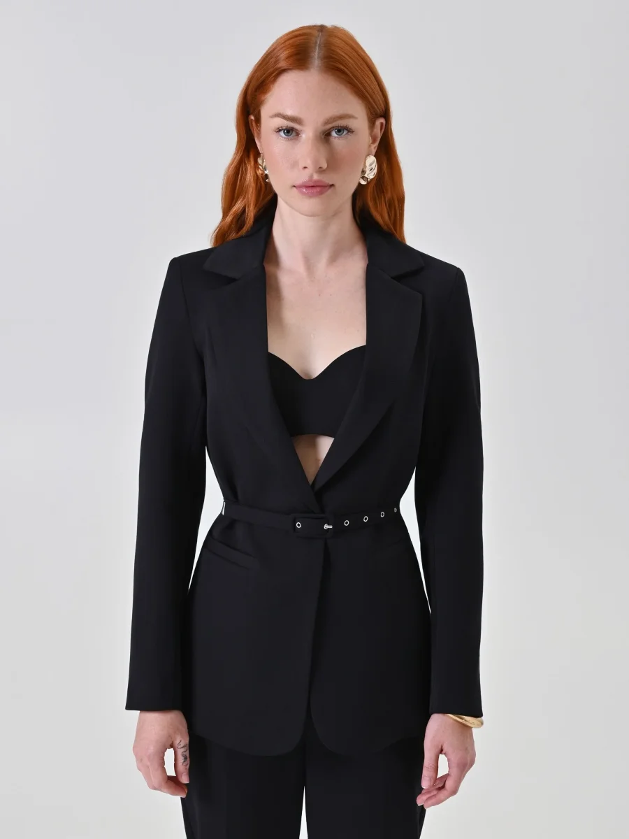 Soyez le premier à laisser votre avis sur “Giacca sfiancata nera con cintura”