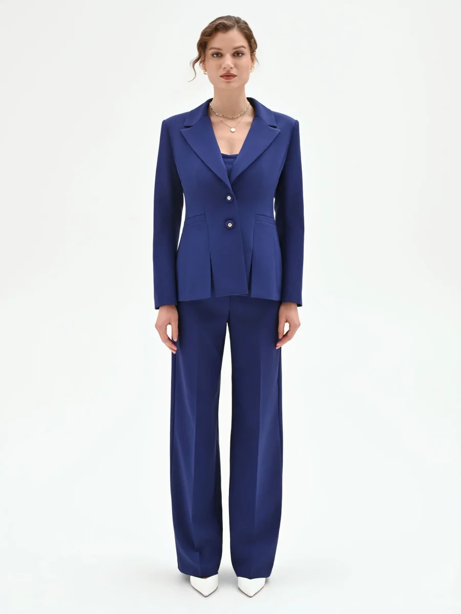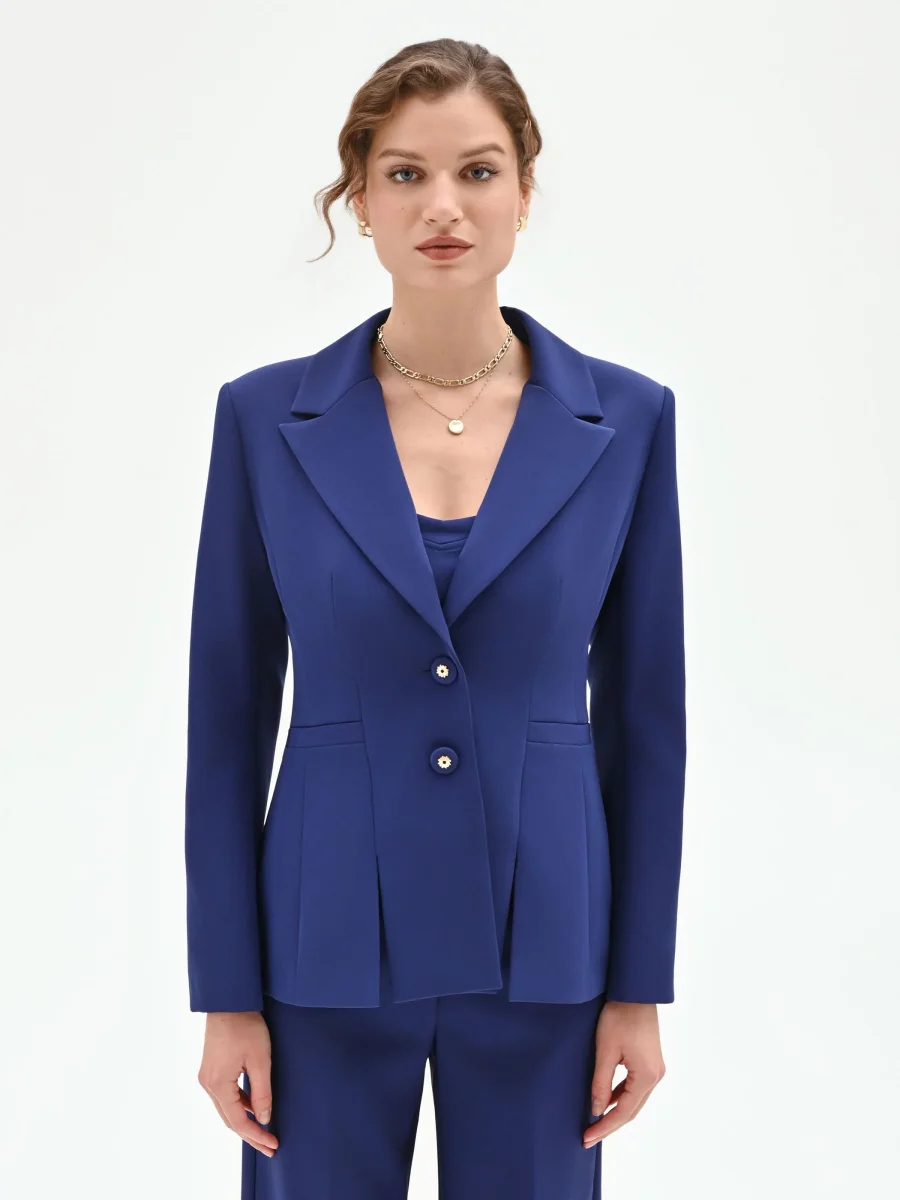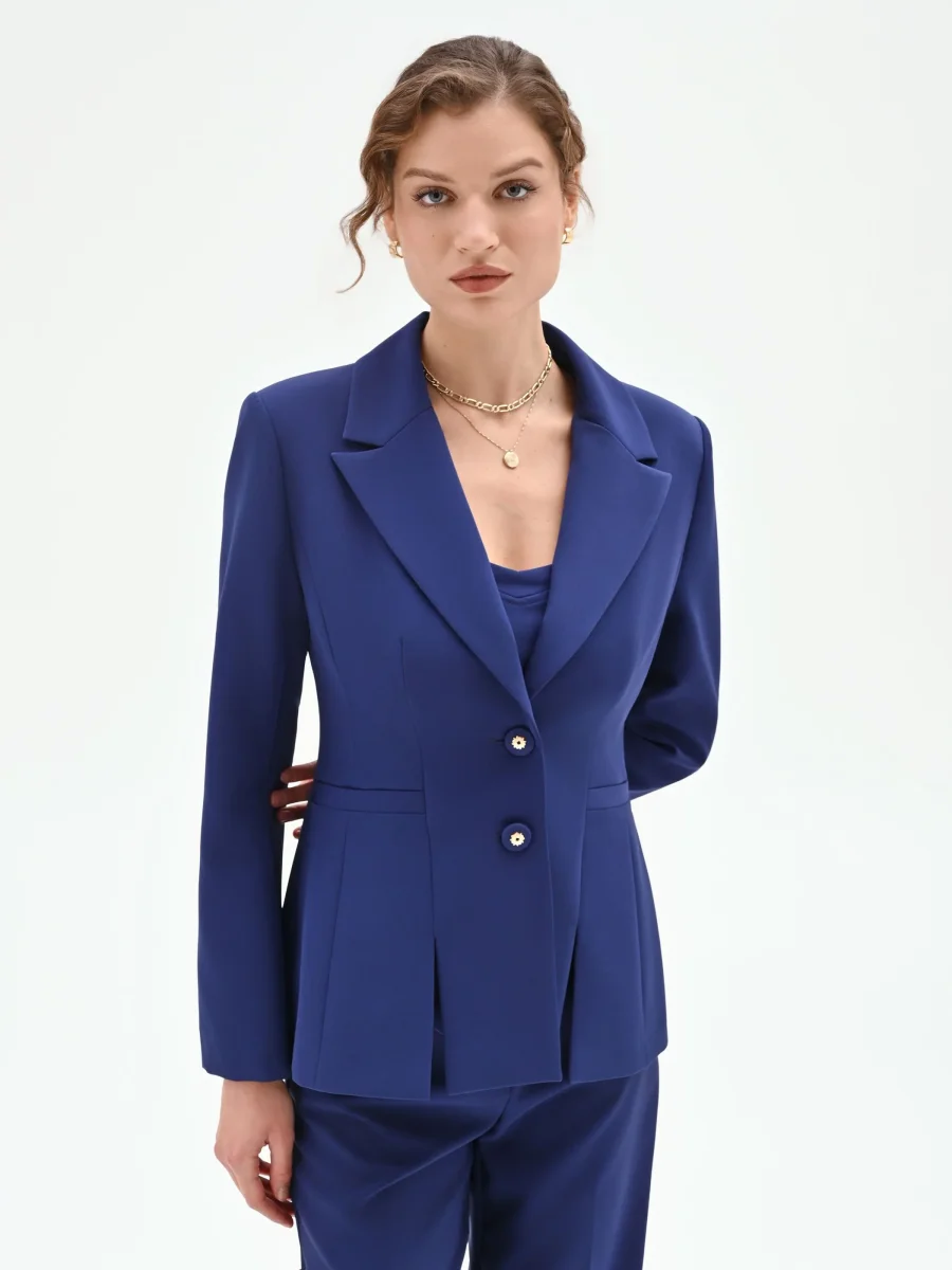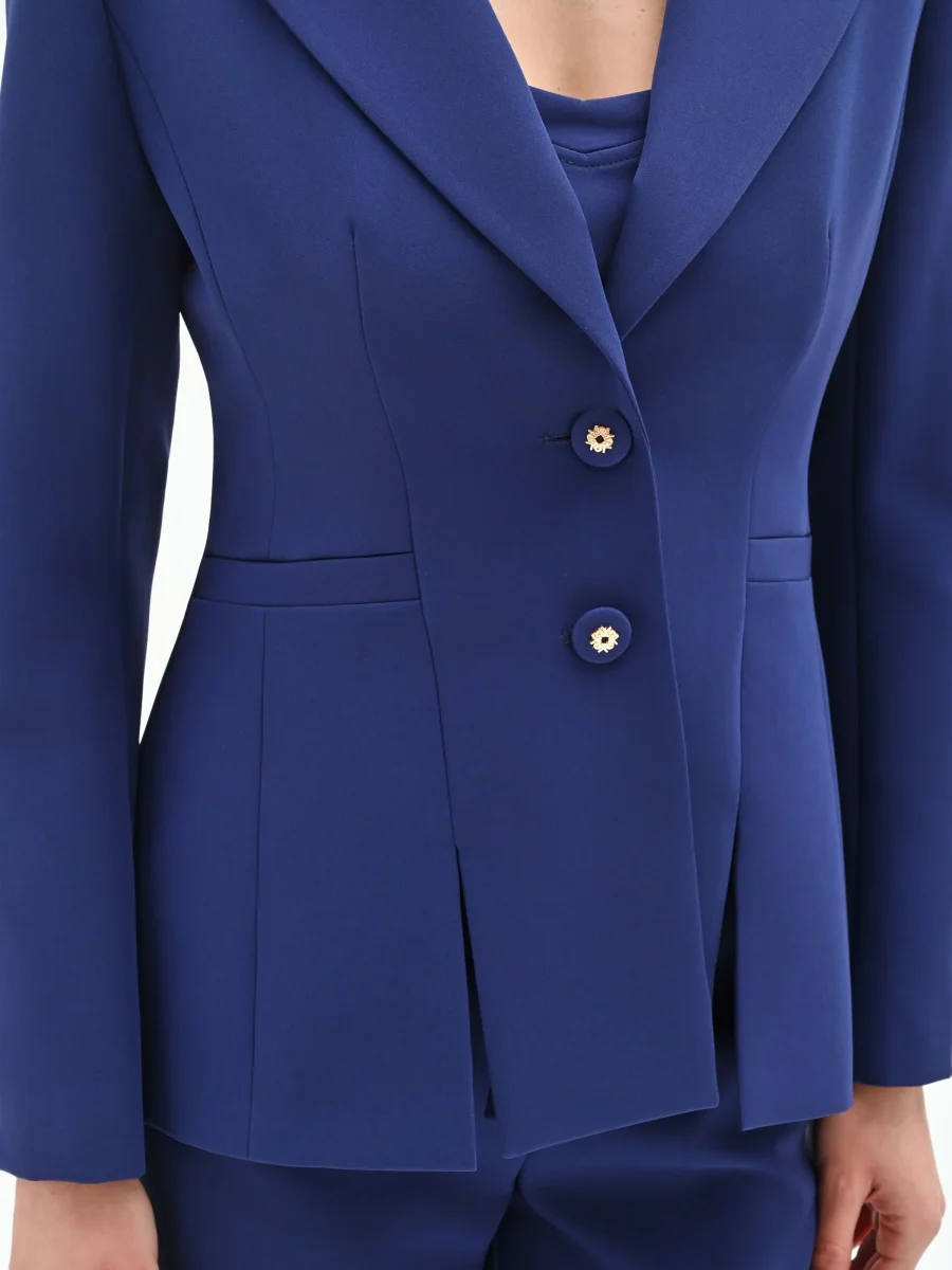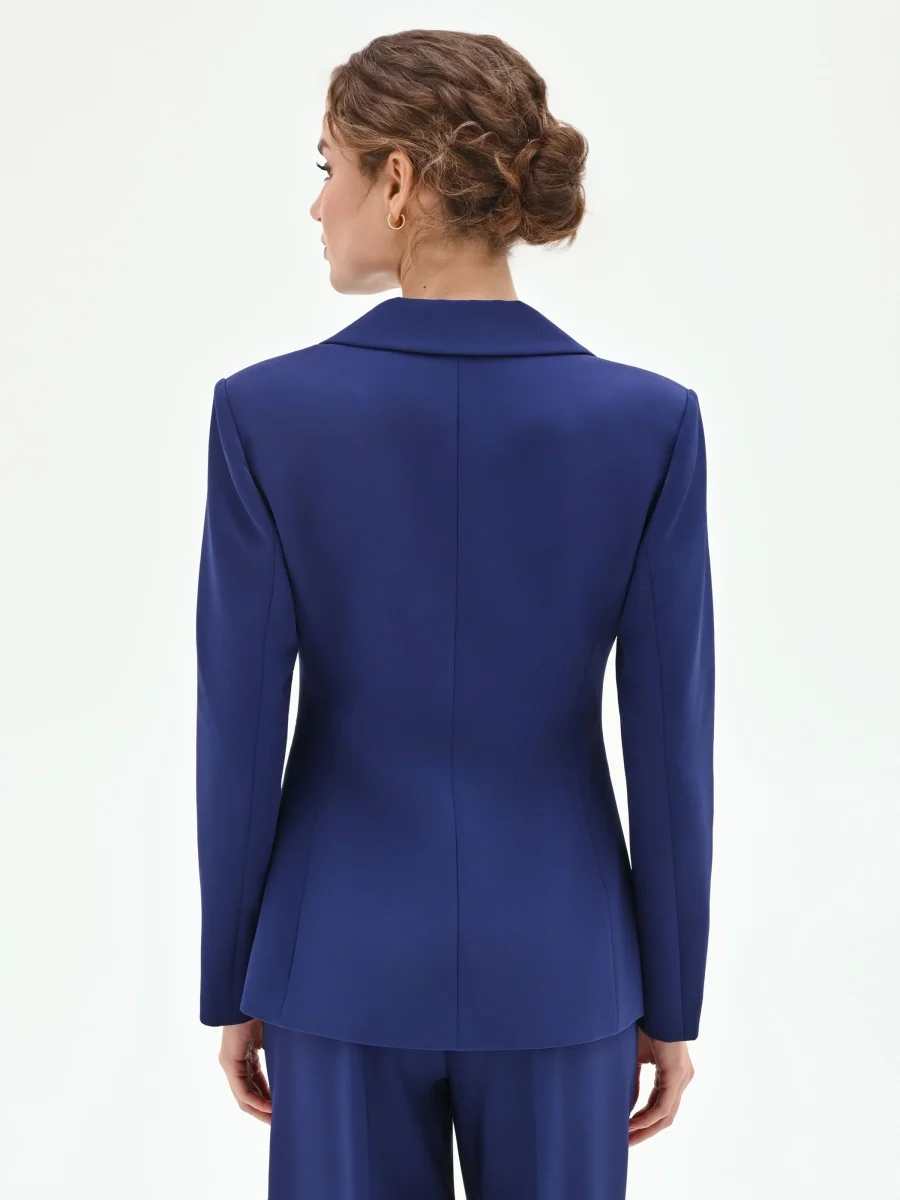 Indispensabile per completare i look da ufficio, le sedute di laurea o gli eventi formali, la giacca monopetto blu in tessuto tecnico si presta a svariate interpretazioni di stile. Abbinala a pantaloni formali coordinati e bluse leggere per un completo business impeccabile, oppure usala per dare struttura a un outfit spezzato. La chiusura con doppio bottone assicura una vestibilità composta e ordinata in ogni movimento.