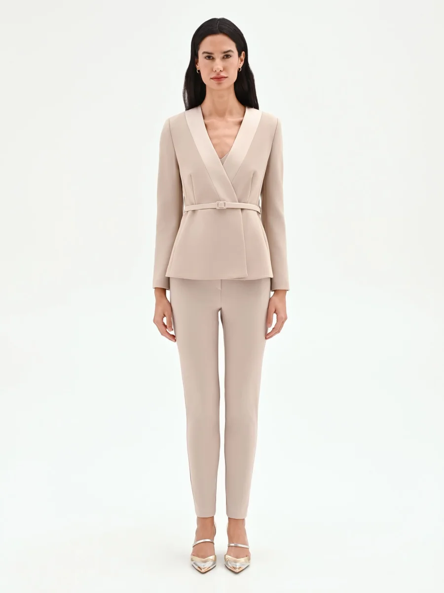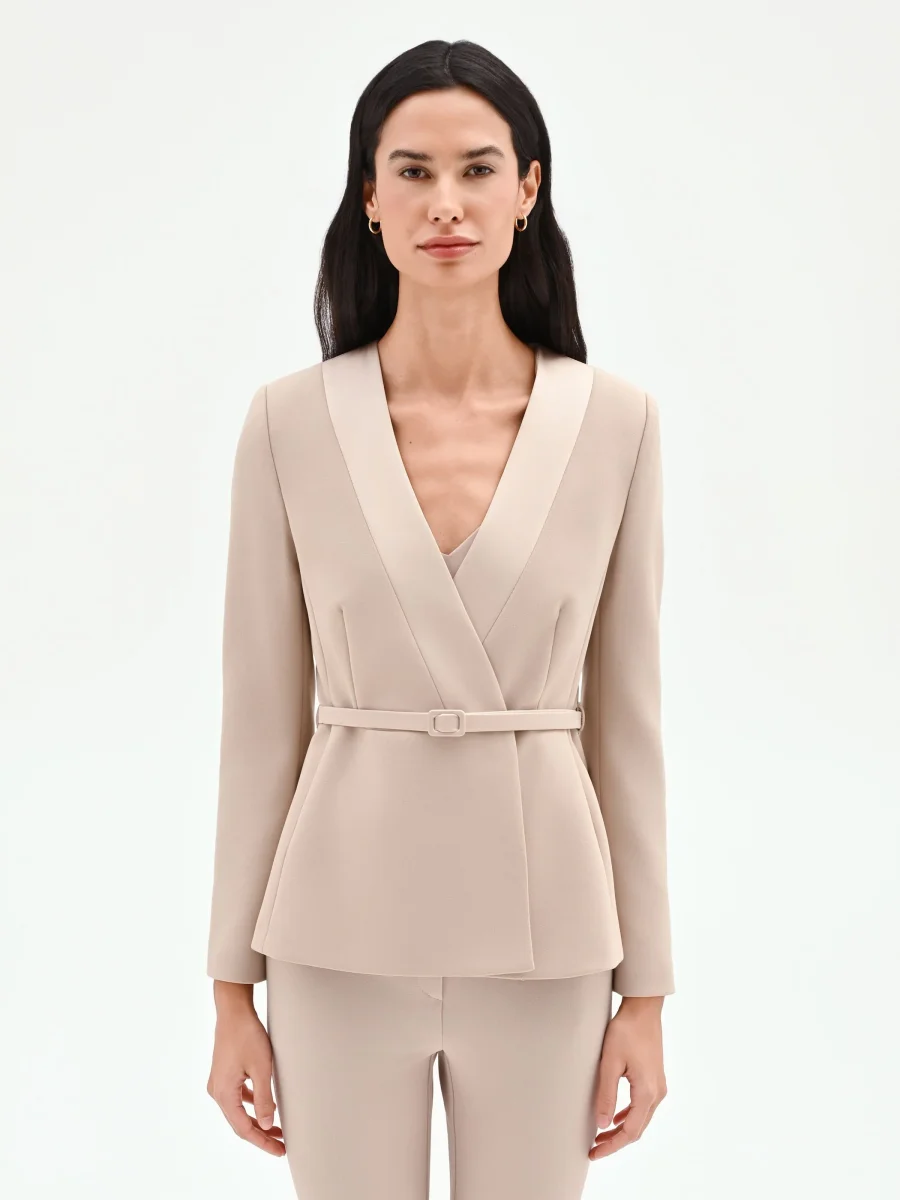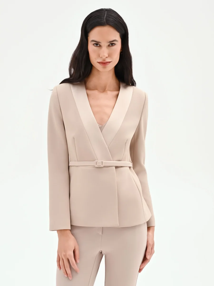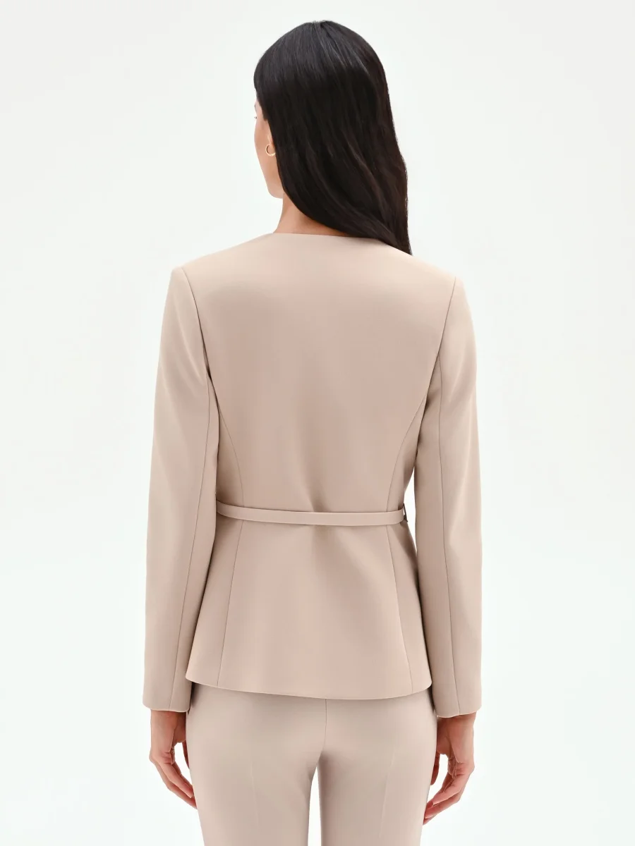 Un’interpretazione contemporanea della giacca formale, che unisce una linea pulita a dettagli ricercati. La giacca tortora beige è pensata per la donna che cerca un capo versatile e femminile per i suoi look da ufficio e per le occasioni speciali.