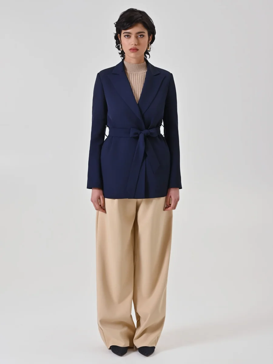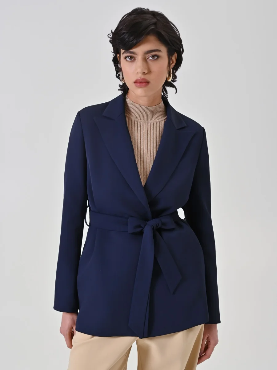 Elegante e versatile, la giacca vestaglia è la scelta perfetta per completare look raffinati con un tocco moderno. Caratterizzata da una linea scivolata e senza bottoni, si chiude con cintura in tessuto removibile, con passanti, da annodare in vita per valorizzare la silhouette. Indossala in coordinato con pantaloni per un total look sofisticato e armonioso, ideale per cerimonie, eventi o occasioni speciali.