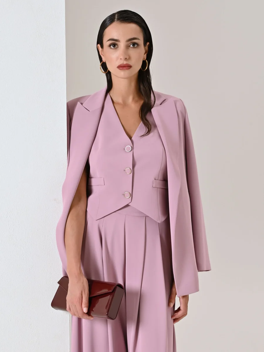 Blazer monopetto rosa pastello in cadi