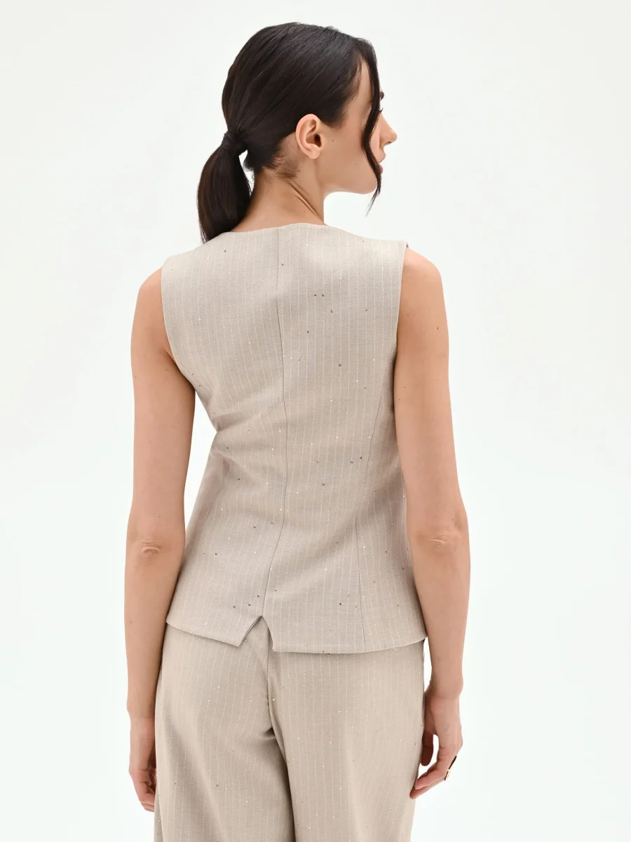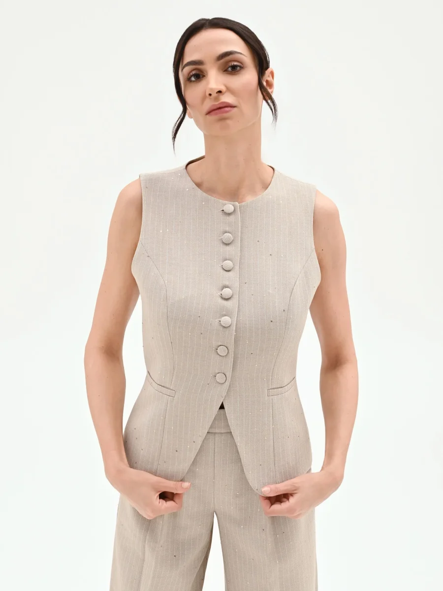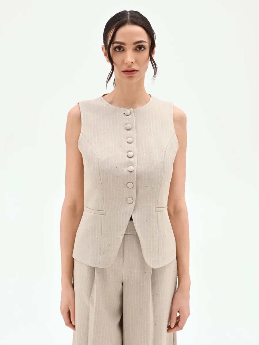 Soyez le premier à laisser votre avis sur “Gilet beige gessato con punti luce”
