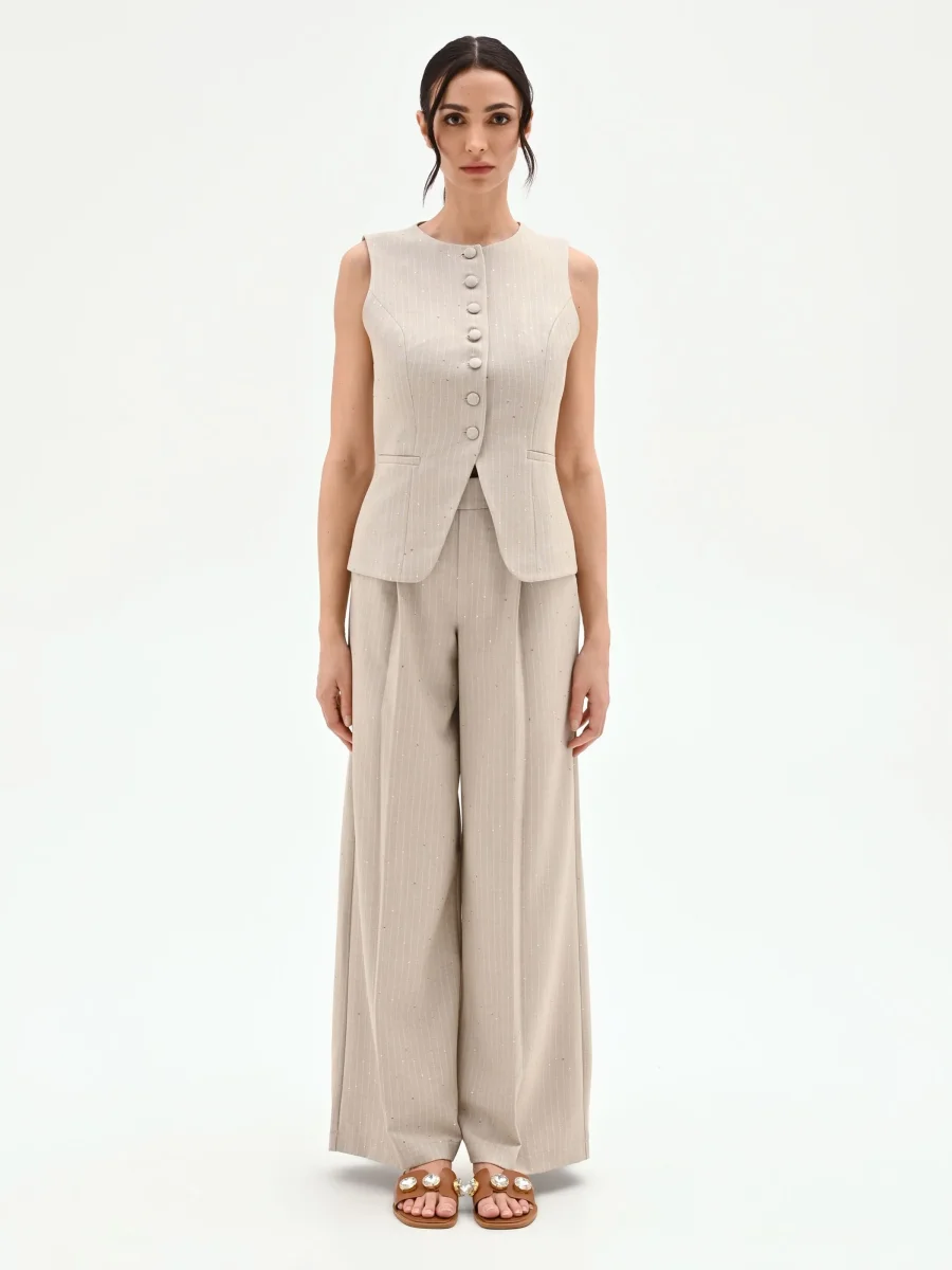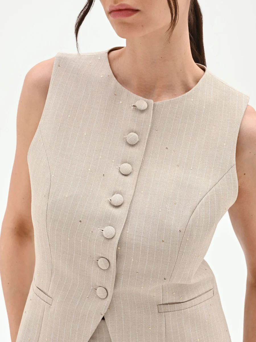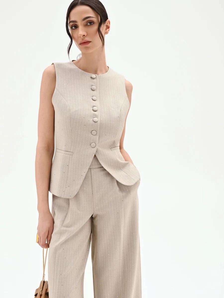 Soyez le premier à laisser votre avis sur “Gilet beige gessato con punti luce”