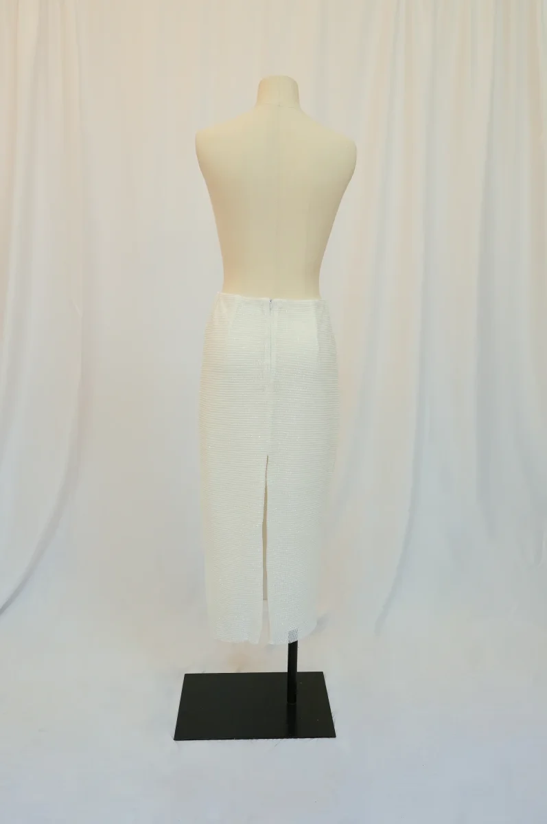 Fabriqué en France ⬇ message alerte ⬇ Attention ! La vente privée se déroule exclusivement en ligne. Aucun essayage n’est possible au showroom. Description Matières : sequin et polyester Couleurs : Blanc Conseils D’entretien Livraison et Retours