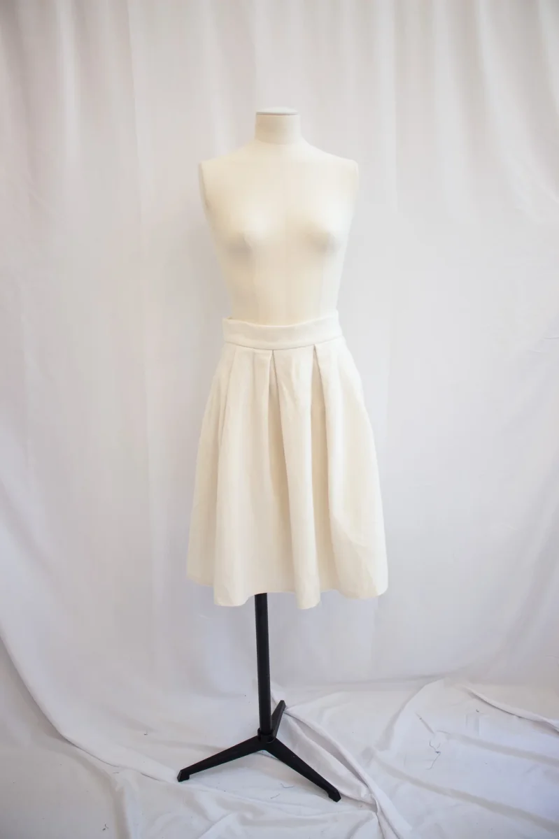 Fabriqué en France ⬇ message alerte ⬇ Attention ! La vente privée se déroule exclusivement en ligne. Aucun essayage n’est possible au showroom. Description Détails : Jupe courte à plis devant Matières : – Laine Couleurs : – Blanc Conseils D’entretien Livraison et Retours
