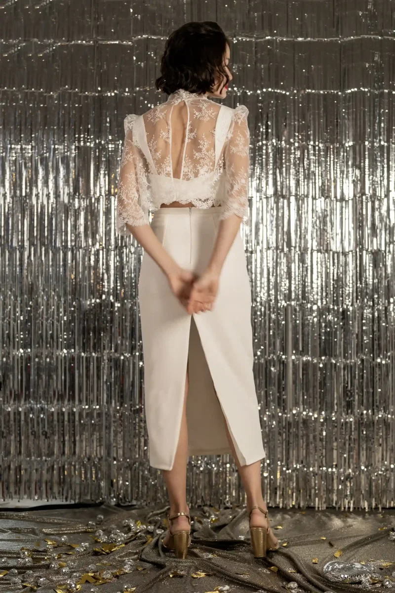 Fabriqué en France Prêt à porter soie : dès 550€Sur-mesure soie : dès 800€ Prêt à porter polyester : dès 400€Sur-mesure polyester : dès 600€ Bustier seul ICI Top Dentelle seul ICI EnsembleICI Description Détails de l’ensemble : Jupe mi-longue : Une coupe fluide et flatteuse, parfaite pour danser toute la nuit. Tissus : Soie […]