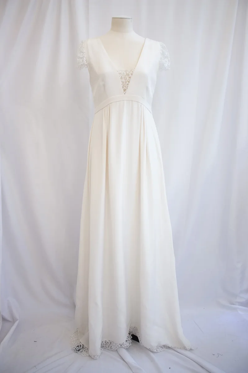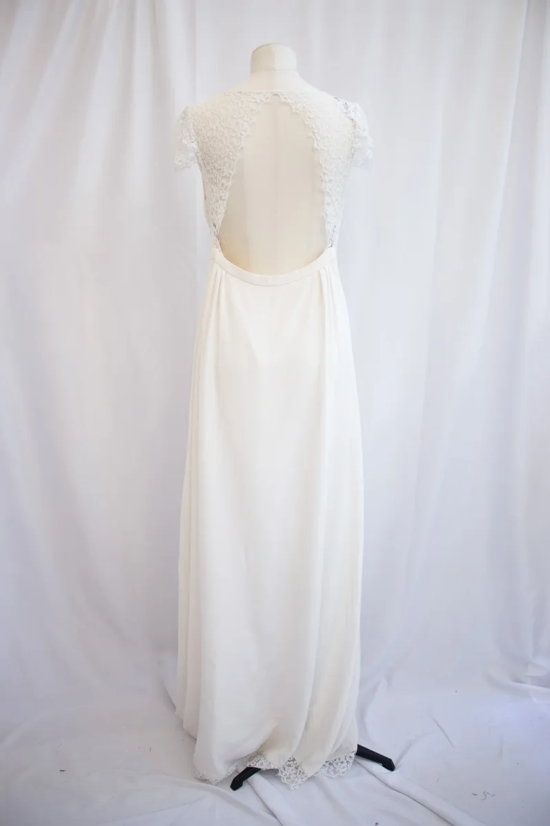 Fabriqué en France ⬇ message alerte ⬇ Attention ! La vente privée se déroule exclusivement en ligne. Aucun essayage n’est possible au showroom. Description Détails : Dentelle déchiré au dos et abimé par endroit. Matières : – Soie Couleurs : – Blanc Conseils D’entretien Livraison et Retours