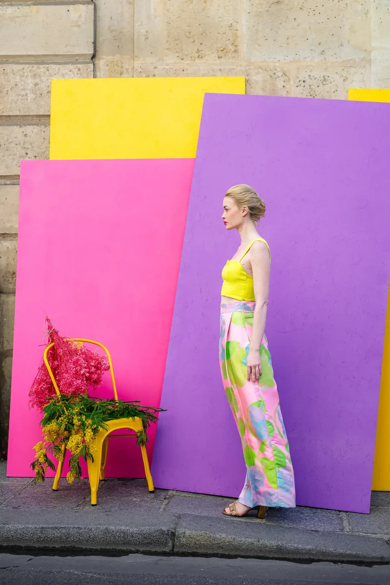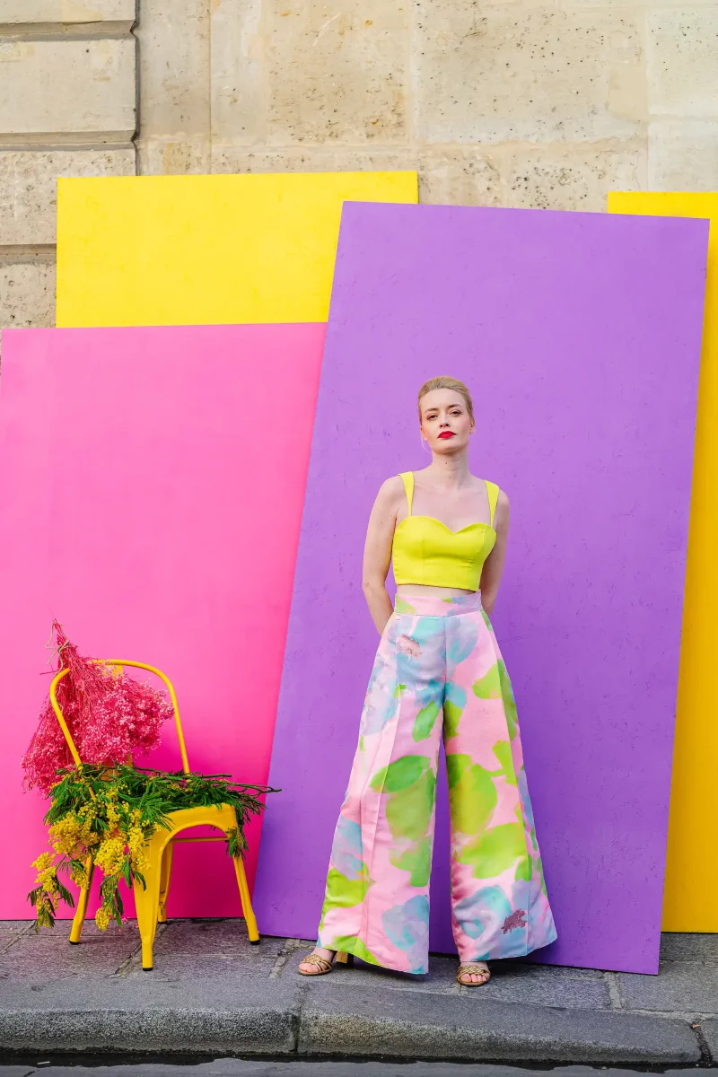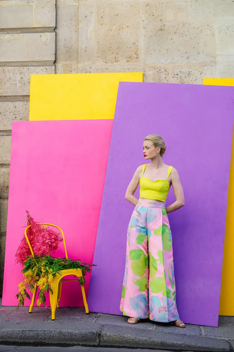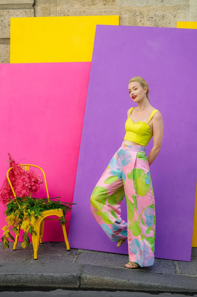 Chez L’Amusée, on célèbre l’amour, la joie et surtout… les looks qui pétillent ! Pour celles qui veulent bousculer les codes avec fraîcheur et poésie, voici l’ensemble le plus éclatant de notre collection en couleur : un duo top & pantalon à l’imprimé pastel.