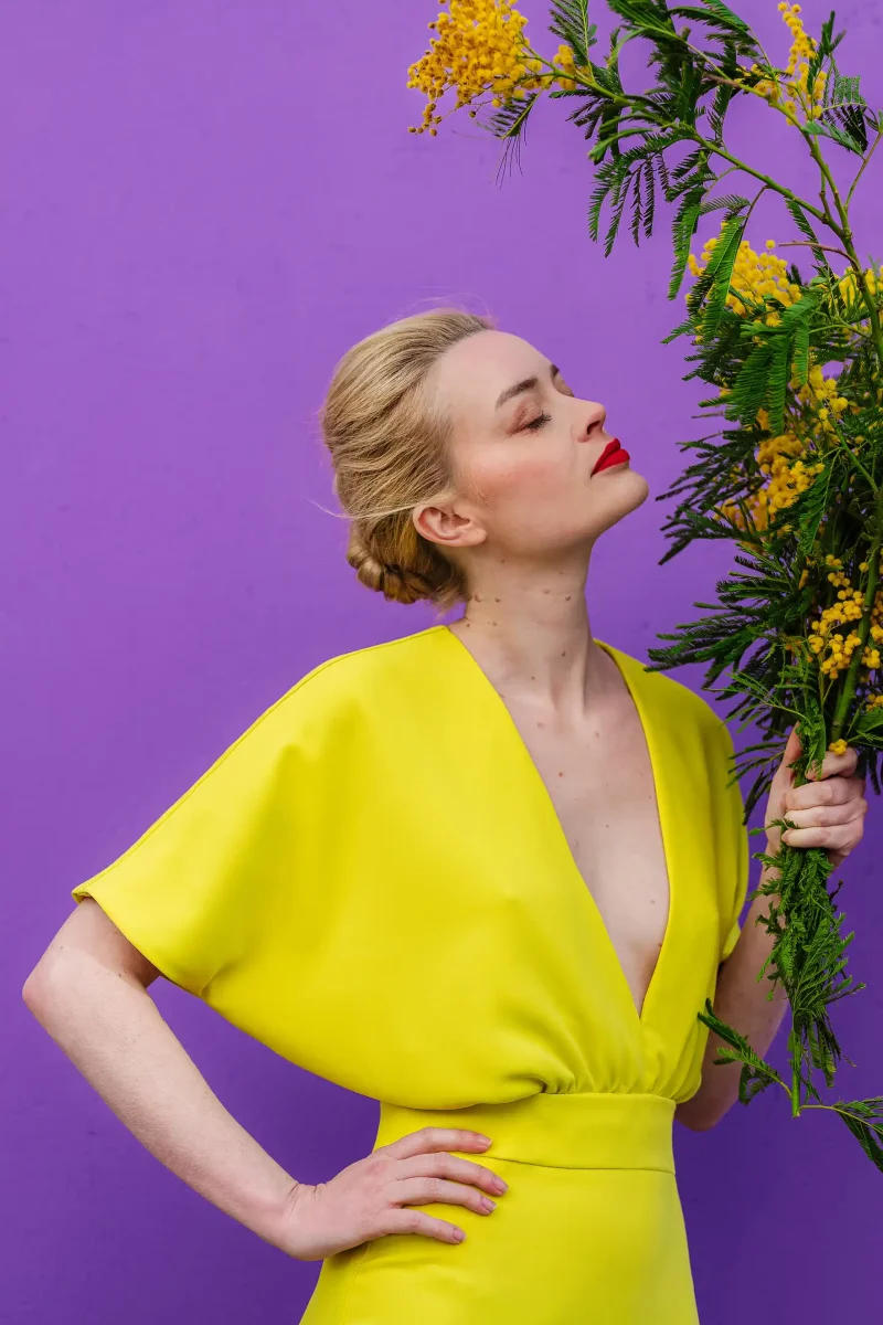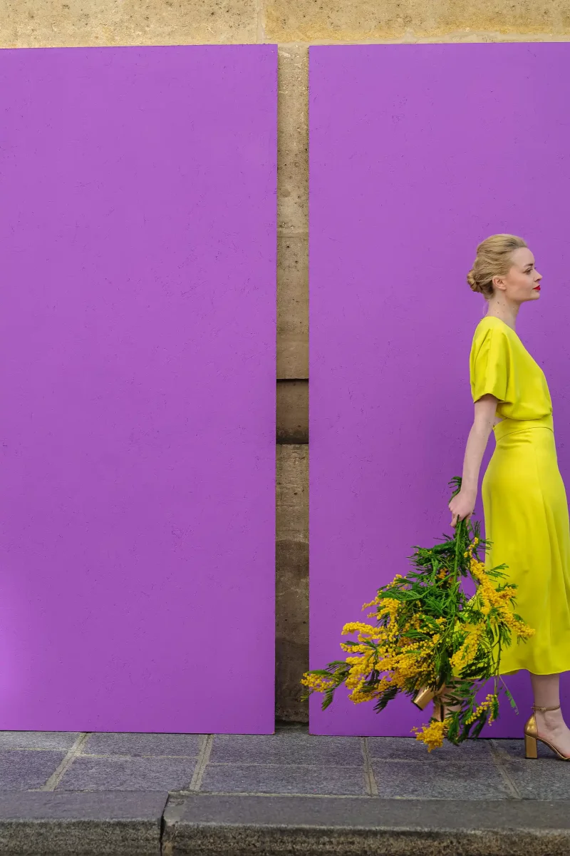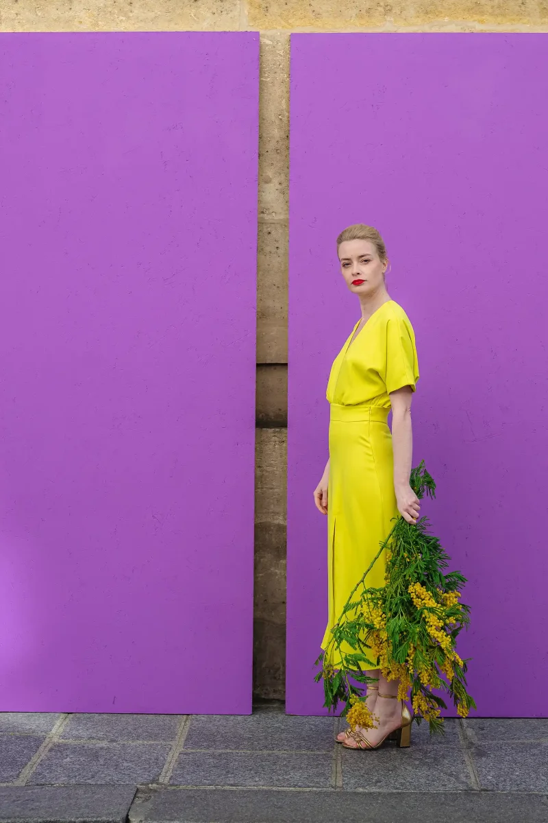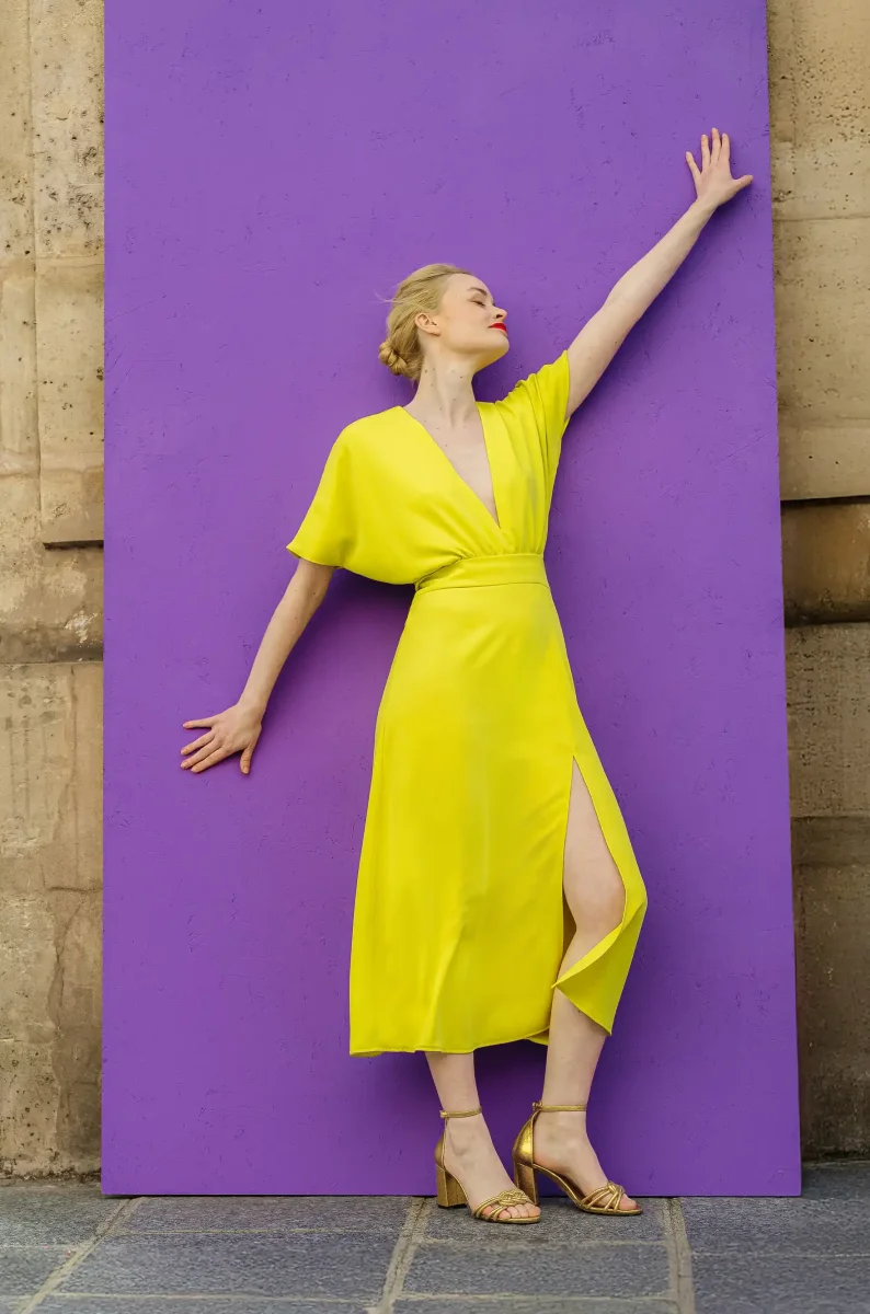 Tissu fluide et lumineux : un jaune lumineux.