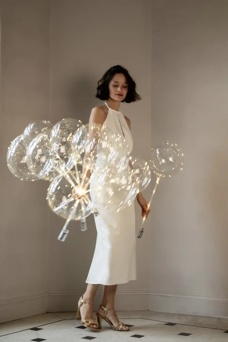 Associez-la à des sandales métalliques et une pochette minimaliste pour une allure glamour. Petit +, vous pouvez également miser sur des grandes boucles d’oreilles ou un voile court.