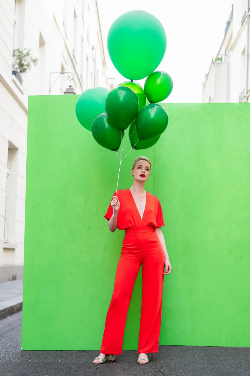 Chez L’Amusée, on adore quand ça pétille ! Et quoi de plus éclatant que cette combinaison orange pleine de bonne humeur ? Pensée pour les invitées de mariage, les témoins stylées ou vos les événements qu’ils soient grands ou petits, cette combinaison pantalon chic est une véritable ode à la couleur.