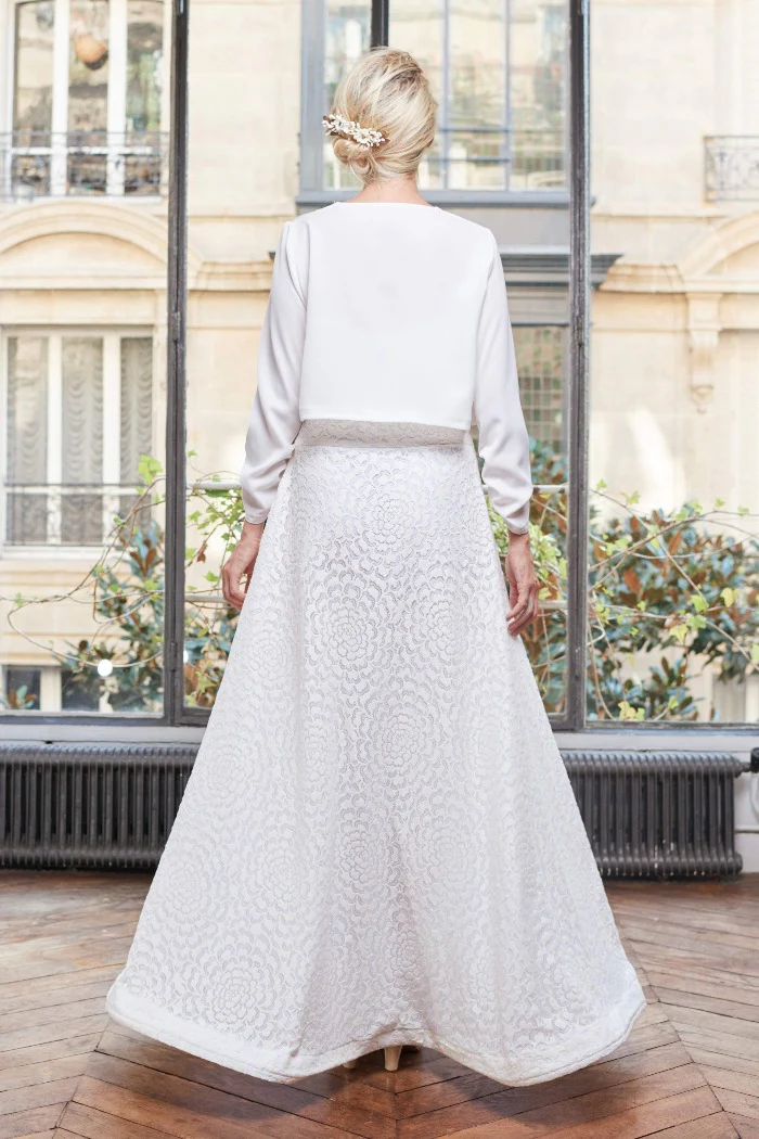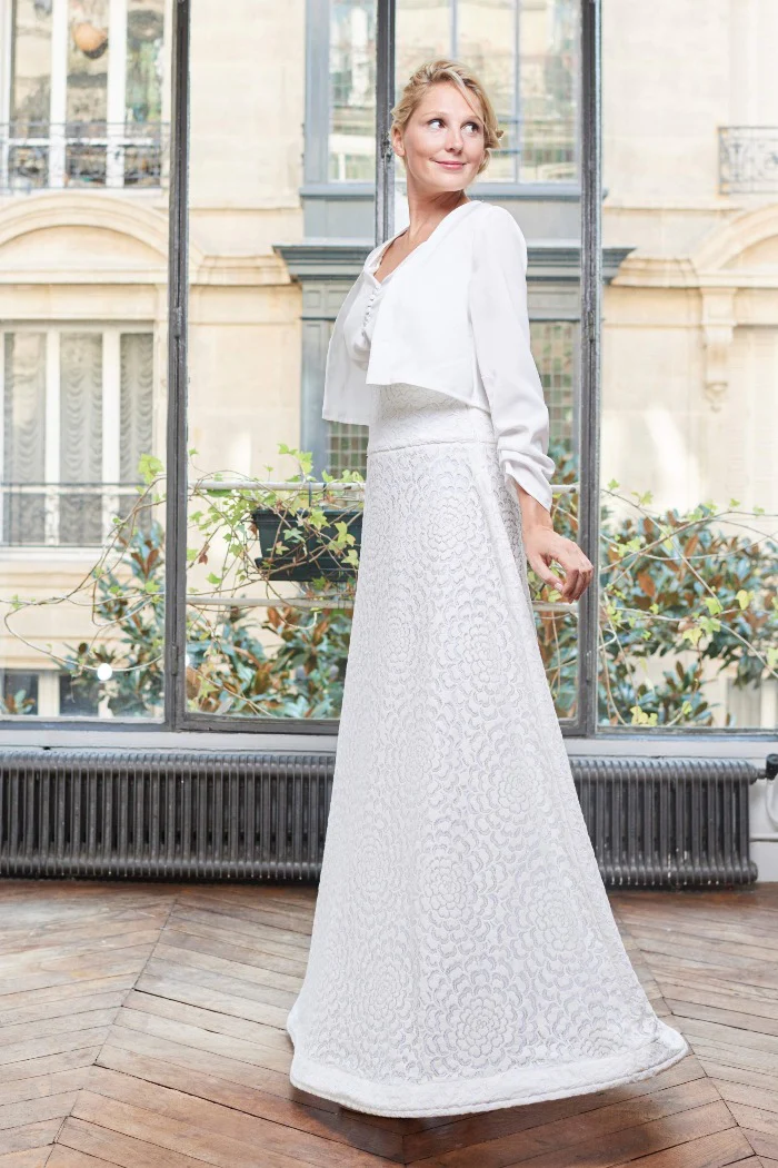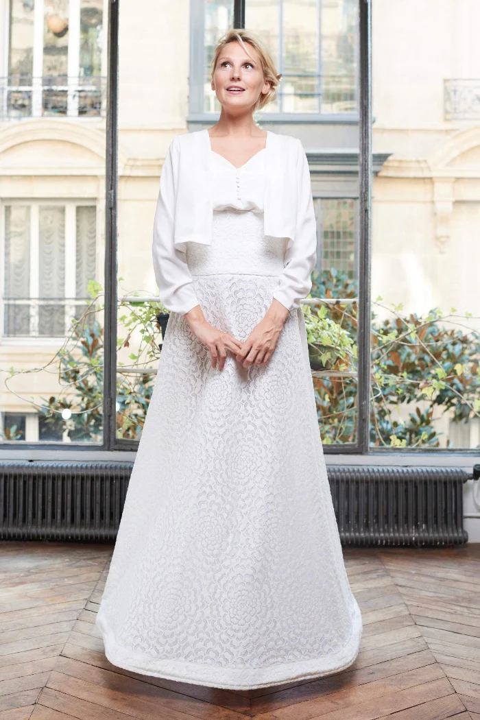 🇫🇷 Fabriqué en France 🇫🇷 – À partir de 300€ ⬇ message alerte ⬇ Description Veste courte style boléro, sans col et manches plissées. Tissu : – Crêpe de soie 100% soie et doublure 100% soie – Crêpe de polyester 100% polyester et doublure 100% polyester Emma mesure 1,75m et porte une T36 Livraison et […]