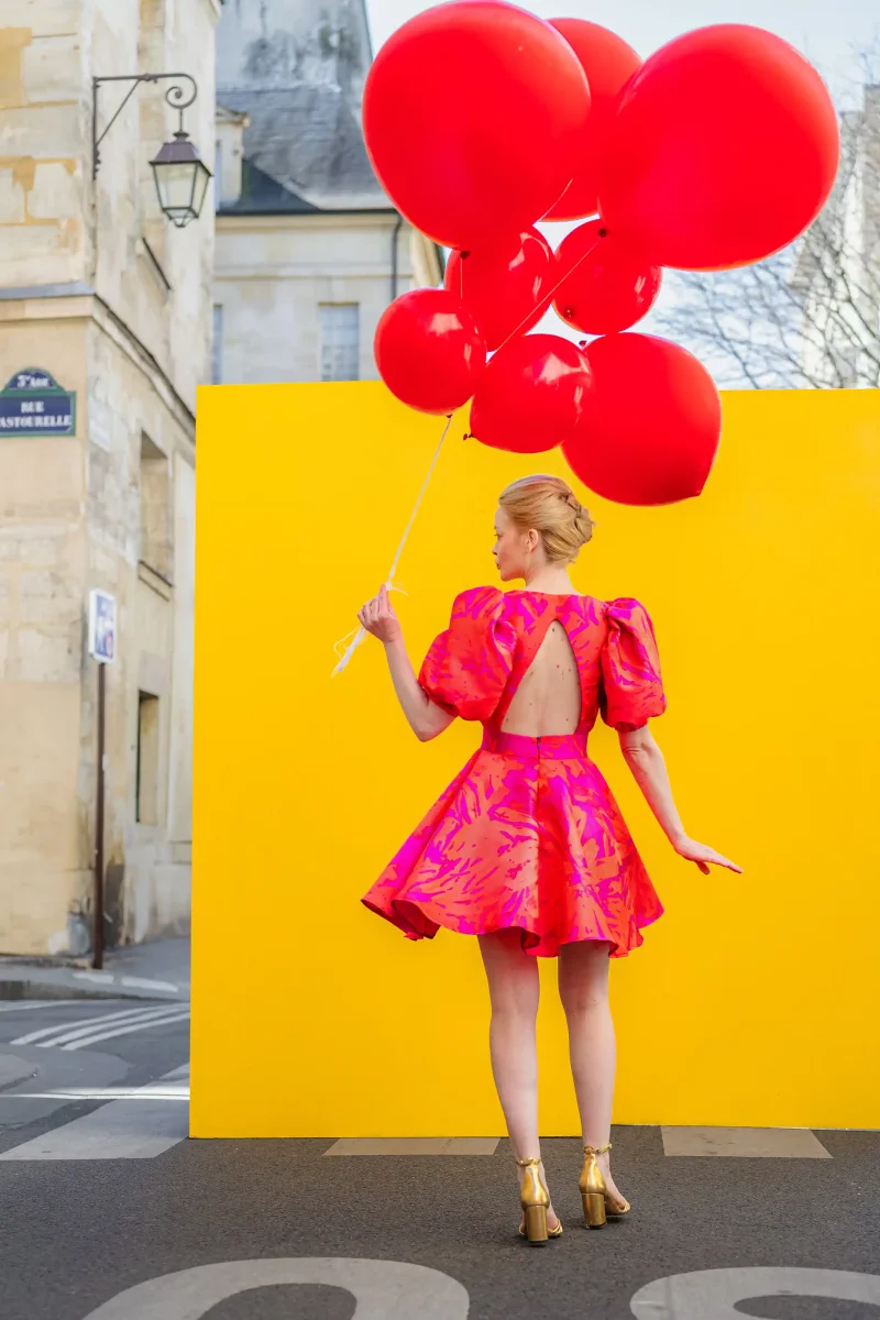 Idéale comme robe de mariage civil, comme robe de témoin de mariage, ou comme tenue d’invitée chic pour toutes celles qui osent les couleurs avec panache. Que vous soyez invitée, sœur de la mariée, meilleure amie, cette robe trapèze courte est faite pour vous.