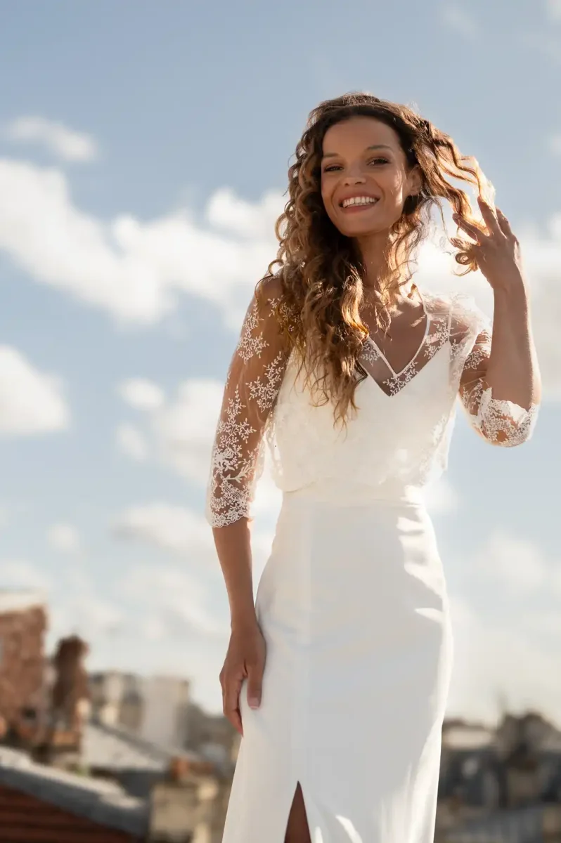 Un modèle parfait pour une mariée qui souhaite rayonner d’élégance, de douceur et d’audace.