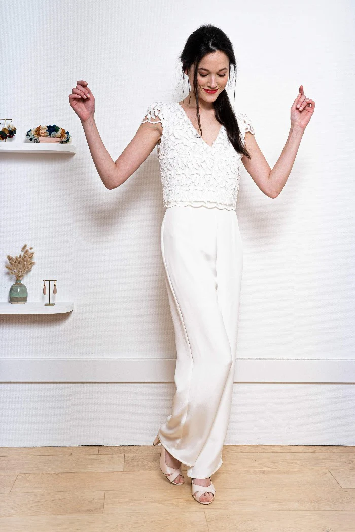 🇫🇷 Fabriqué en France 🇫🇷 – à partir de :Ensemble 650€ / Top 330€ / Pantalon 350 ⬇ message alerte ⬇ Top seul ICI Pantalon seul ICI Description Pantalon droit légèrement évasé avec son haut crop top en plume (ou en crêpe) et son décolleté dos inversé. Tissu : – Crêpe de soie 100% soie, […]