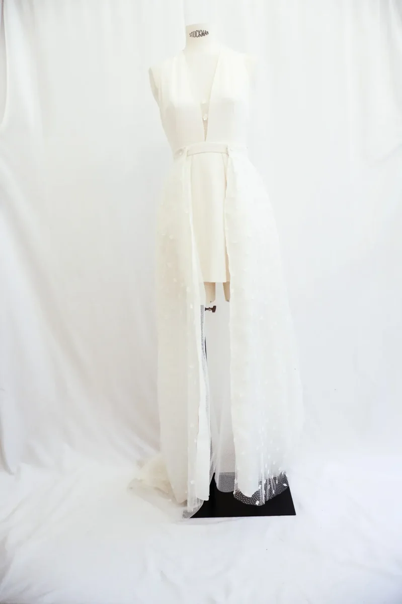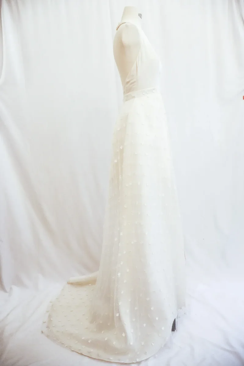 Fabriqué en France ⬇ message alerte ⬇ Attention ! La vente privée se déroule exclusivement en ligne. Aucun essayage n’est possible au showroom. Description Défaut : Fils tirés sur la ceinture devant jupe. Matières : – Soie et dentelle Conseils D’entretien Livraison et Retours