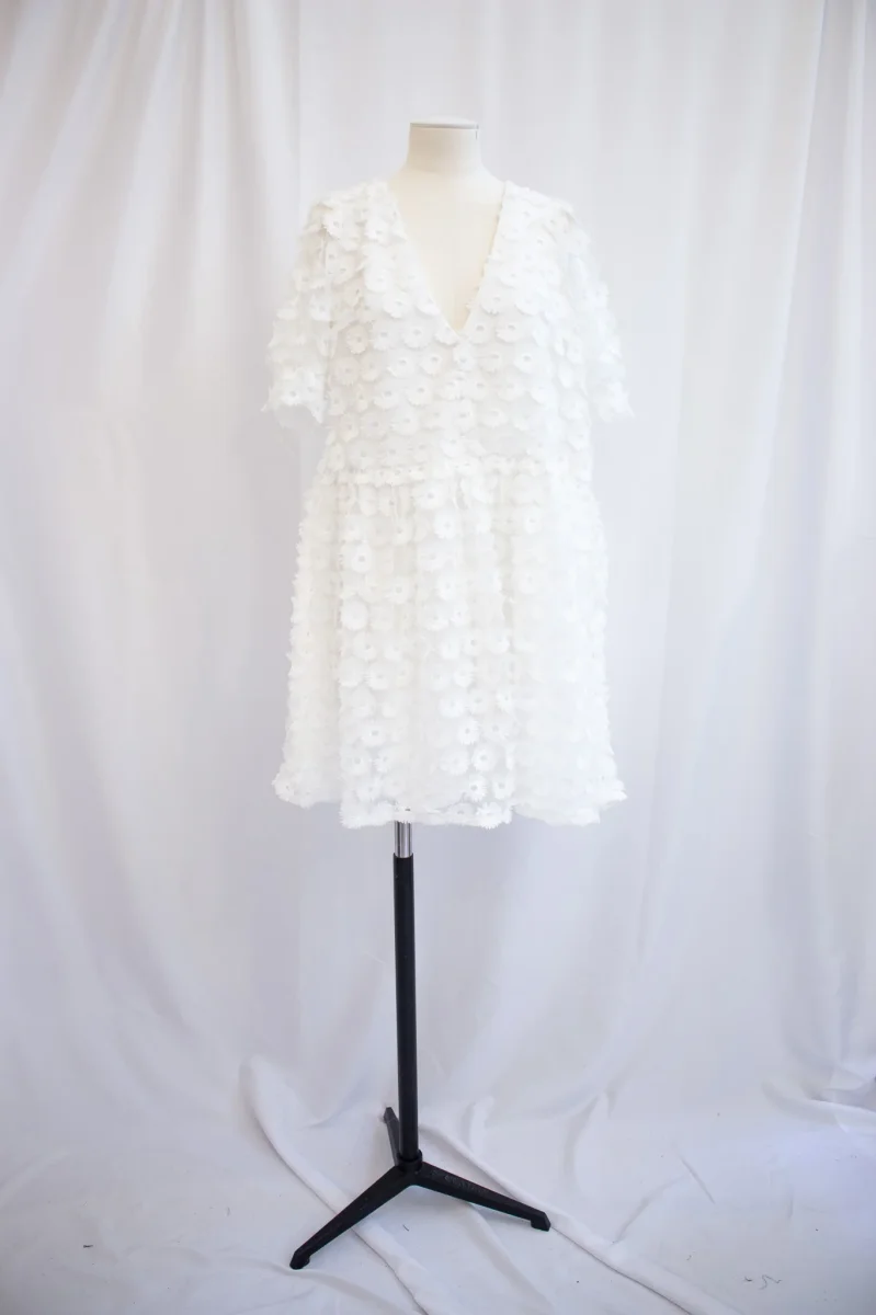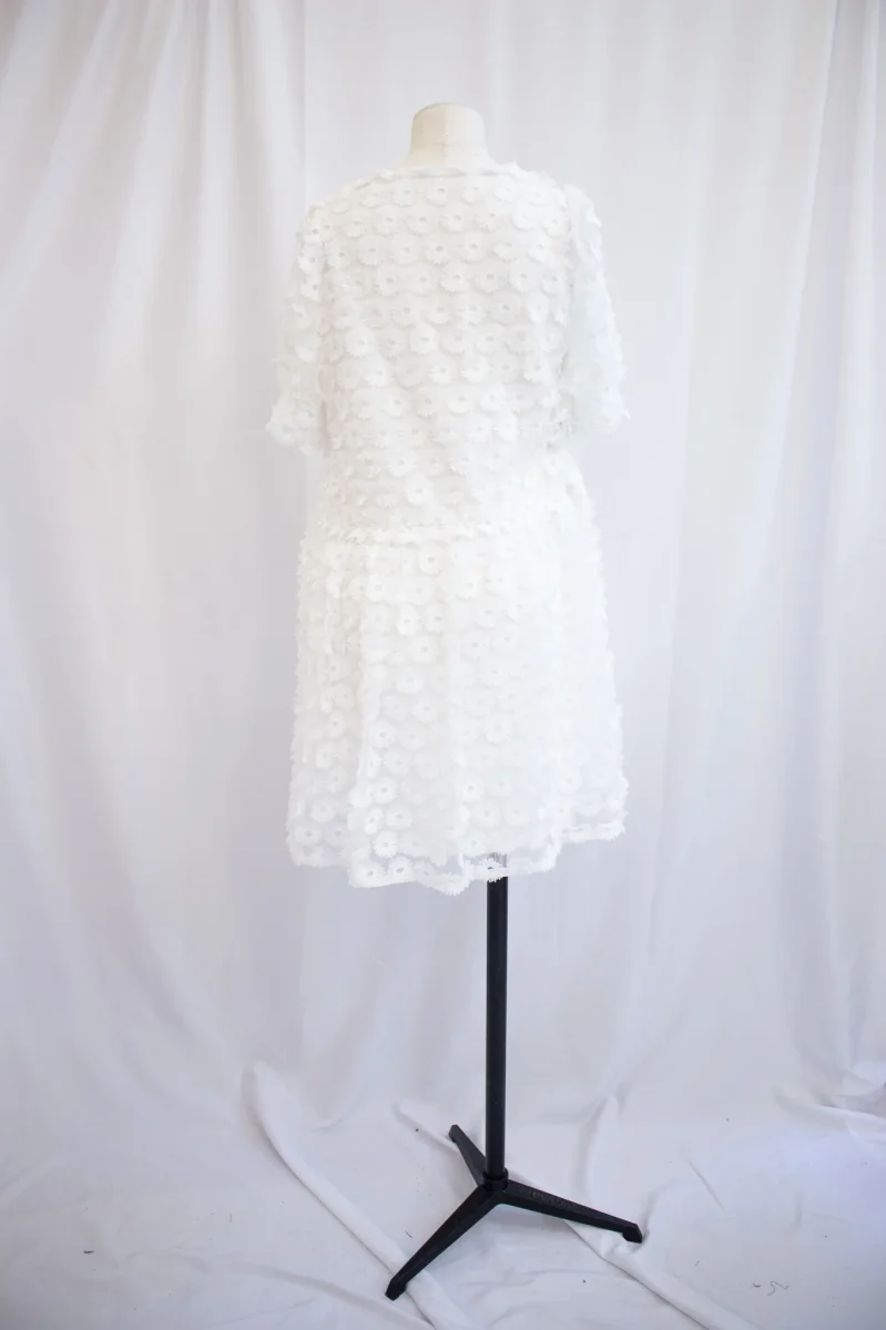 Fabriqué en France ⬇ message alerte ⬇ Attention ! La vente privée se déroule exclusivement en ligne. Aucun essayage n’est possible au showroom. Description Matières : – Polyester Couleurs : – Blanc Conseils D’entretien Livraison et Retours
