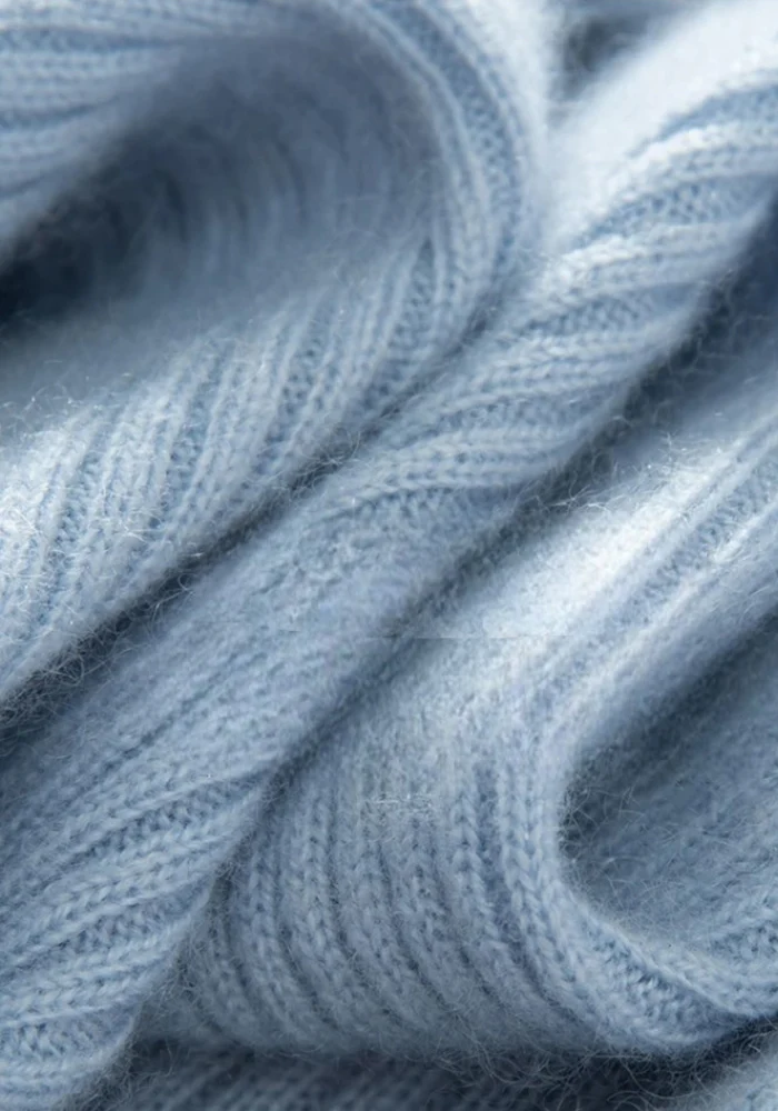 Enveloppez-vous de douceur avec notre robe bleue clair hiver, confectionnée en pur cachemire pour des sensations divinement chaleureuses.