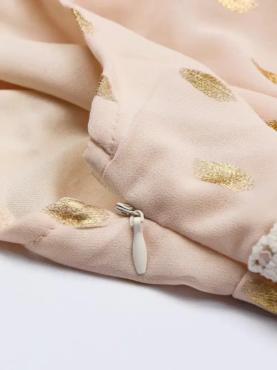 - ✦ Tissu mousseline ultra léger avec motifs dorés scintillants