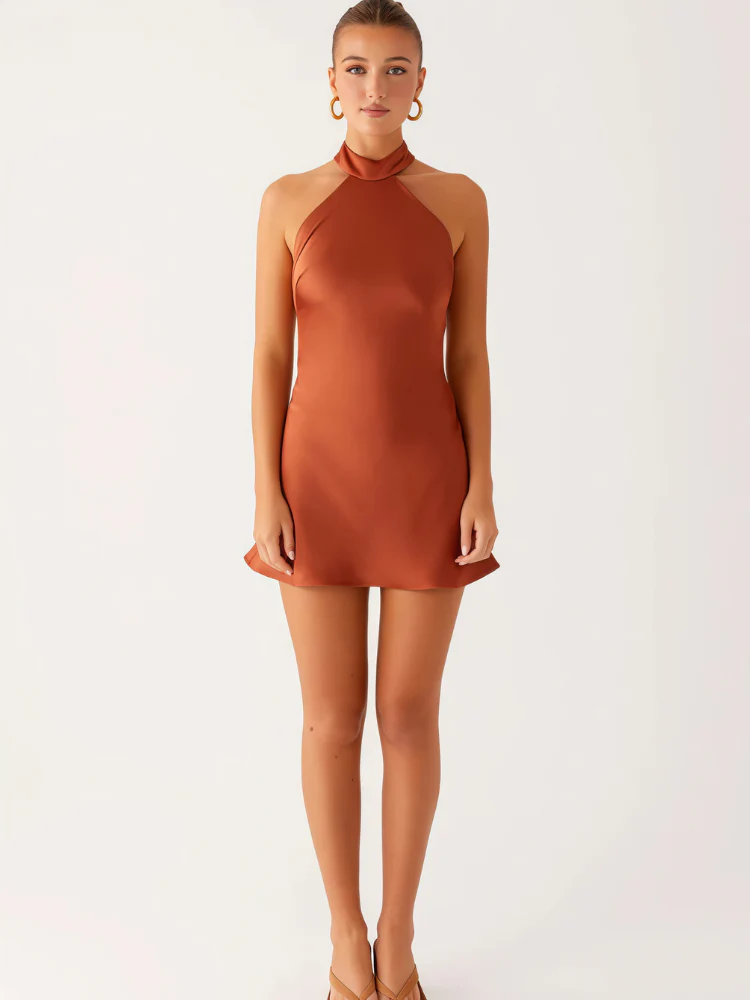 Robe courte satinée terracotta au charme estival