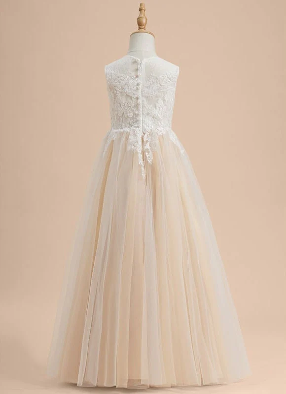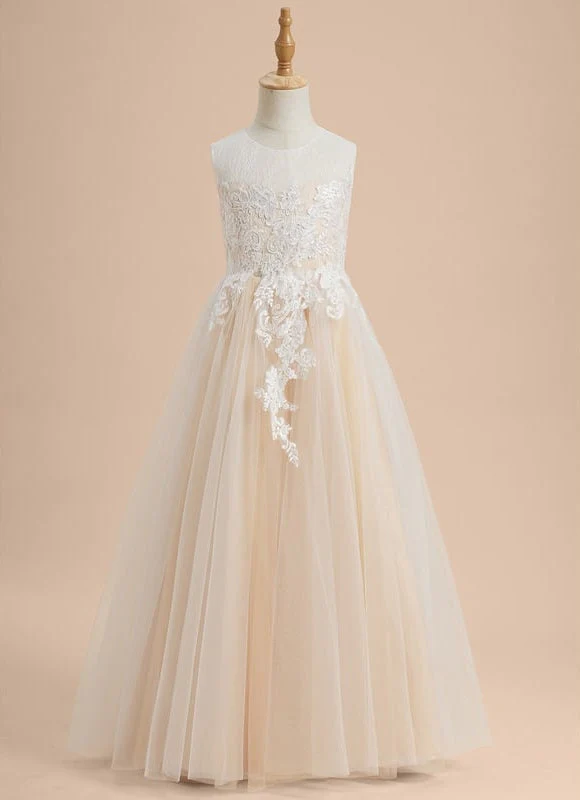 Cette robe dorée captivera tous les regards avec son bustier asymétrique orné de dentelle blanche sur fond champagne et sa jupe en tulle vaporeux. Le nœud doré dans le dos ajoute une touche de sophistication qui fera briller votre petite princesse pendant cette journée spéciale.