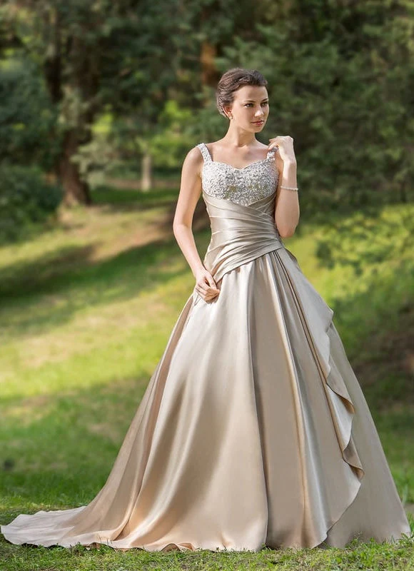 Disponible du XXS-32 au XXL-56. Confectionnée en dentelle et tulle premium dans une sublime teinte champagne intemporelle.