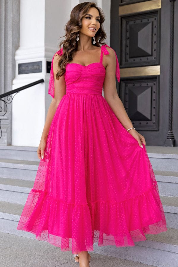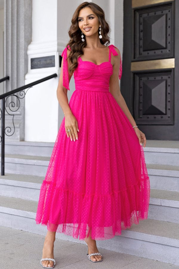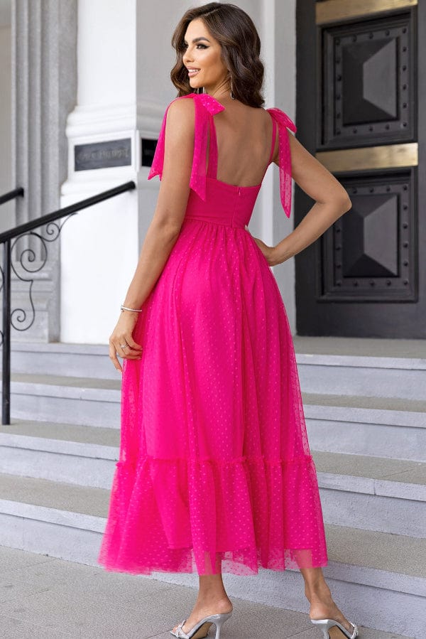 - Détails : Bretelles nouées, bustier drapé, jupe vaporeuse